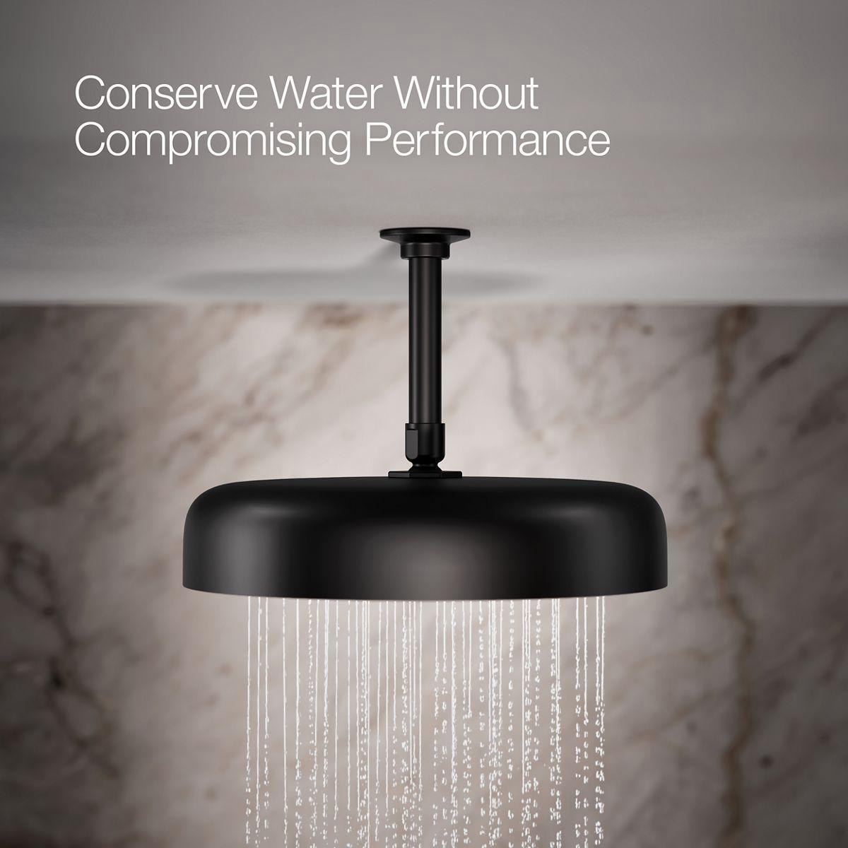 Enjoy a shower that simulates a soaking summer storm, all while conserving water. This contemporary 12 round rainhead features Full Coverage with Katalyst air-induction technology, which efficiently mixes air and water to produce large water droplets and deliver a powerful, consistent, full overhead spray experience at 1.75 gpm. The single-function rainhead's clean good looks and durable finish coordinate with many KOHLER faucets and accessories.