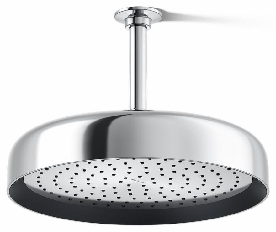 Enjoy a shower that simulates a soaking summer storm, all while conserving water. This contemporary 12 round rainhead features Full Coverage with Katalyst air-induction technology, which efficiently mixes air and water to produce large water droplets and deliver a powerful, consistent, full overhead spray experience at 1.75 gpm. The single-function rainhead's clean good looks and durable finish coordinate with many KOHLER faucets and accessories.