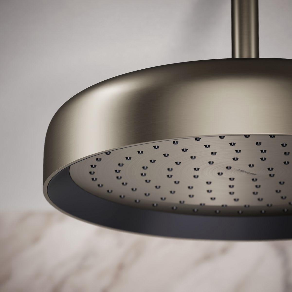 Enjoy a shower that simulates a soaking summer storm, all while conserving water. This contemporary 12 round rainhead features Full Coverage with Katalyst air-induction technology, which efficiently mixes air and water to produce large water droplets and deliver a powerful, consistent, full overhead spray experience at 1.75 gpm. The single-function rainhead's clean good looks and durable finish coordinate with many KOHLER faucets and accessories.
