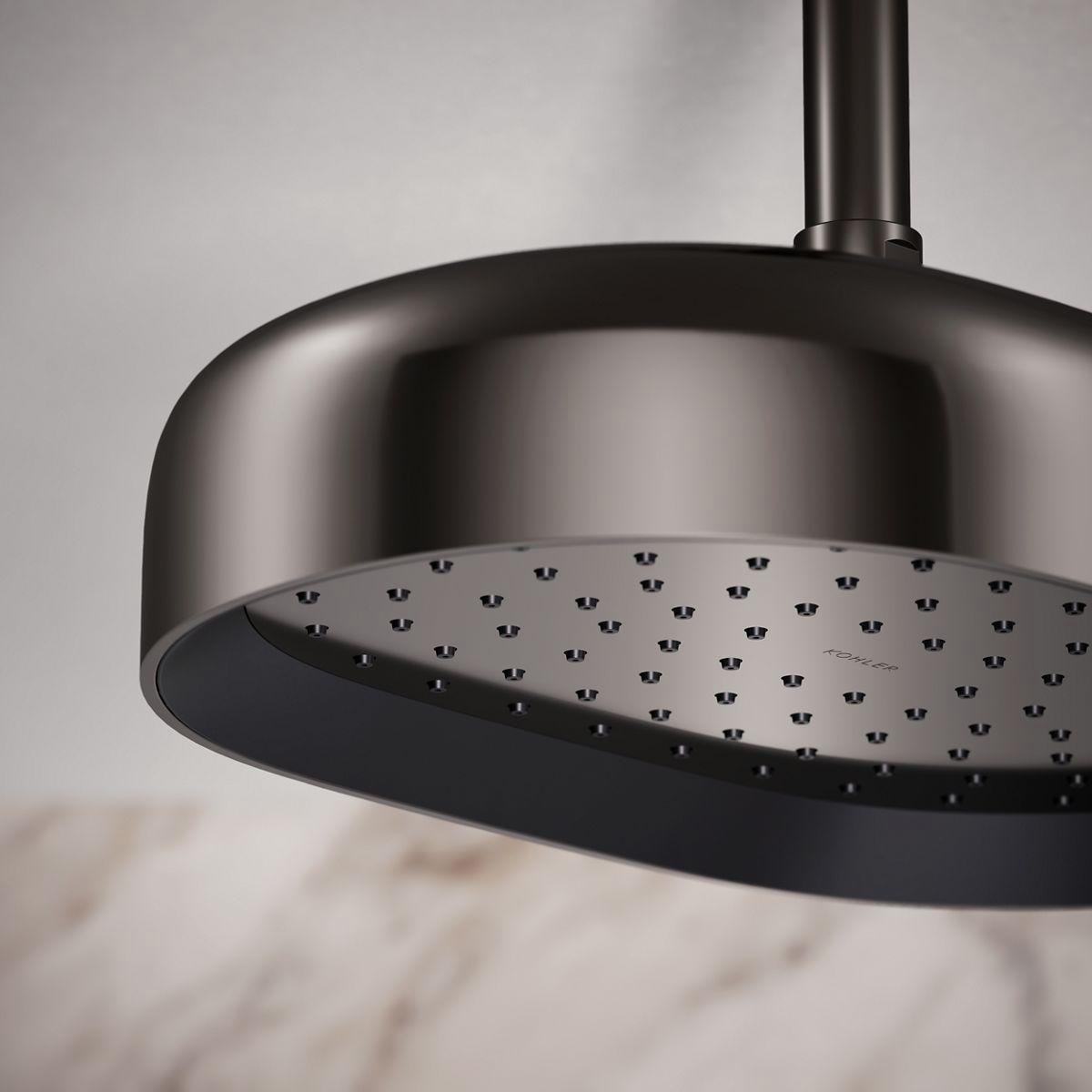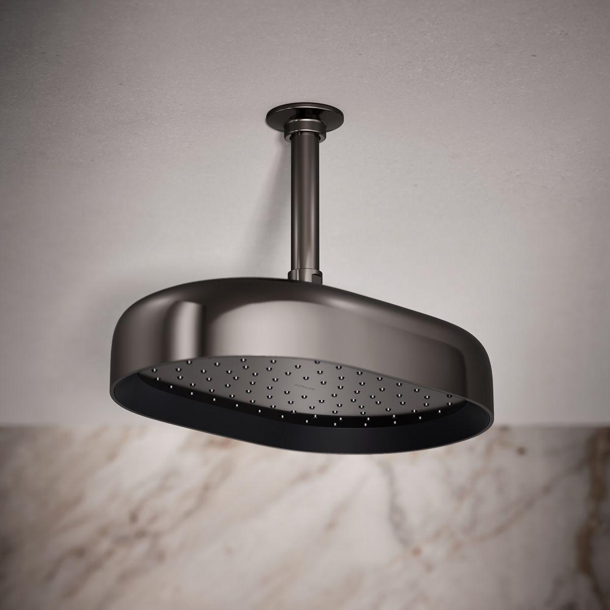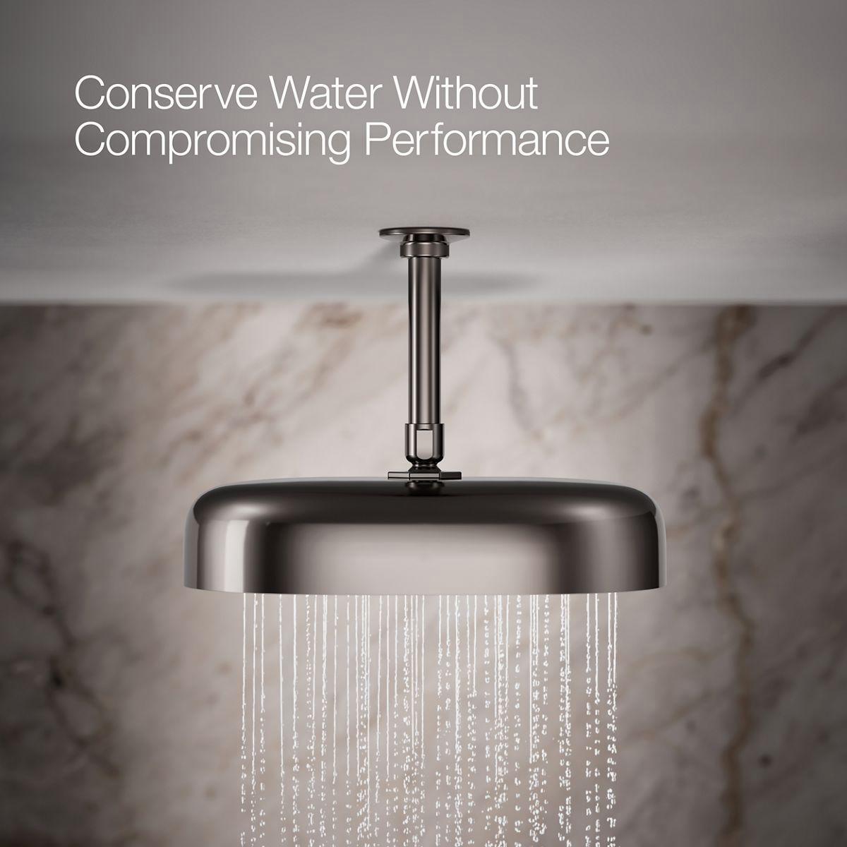 Enjoy a shower that simulates a soaking summer storm, all while conserving water. This contemporary 12 oblong rainhead features Full Coverage with Katalyst air-induction technology, which efficiently mixes air and water to produce large water droplets and deliver a powerful, consistent, full overhead spray experience at 1.75 gpm. The single-function rainhead's clean good looks and durable finish coordinate with many KOHLER faucets and accessories.