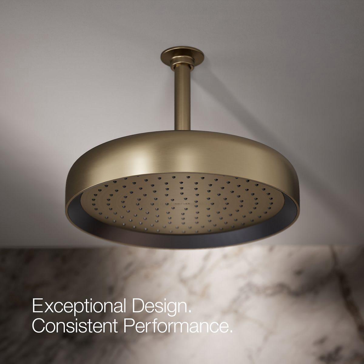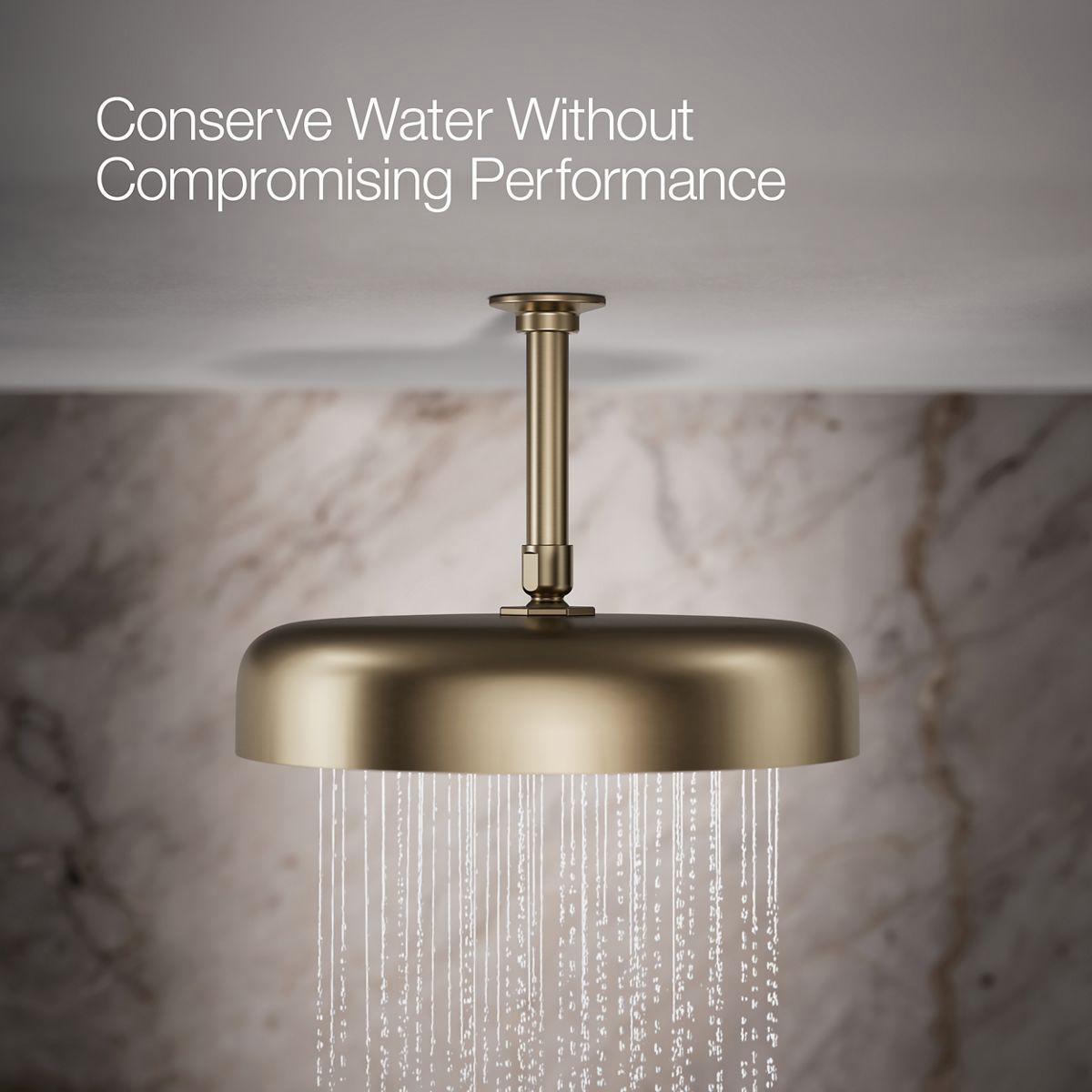 Enjoy a shower that simulates a soaking summer storm, all without wasteful overspray. This contemporary 12 round rainhead features Full Coverage with Katalyst air-induction technology, which efficiently mixes air and water to produce large water droplets and deliver a powerful, consistent, full overhead spray experience. The single-function rainhead's clean good looks and durable finish coordinate with many KOHLER faucets and accessories.