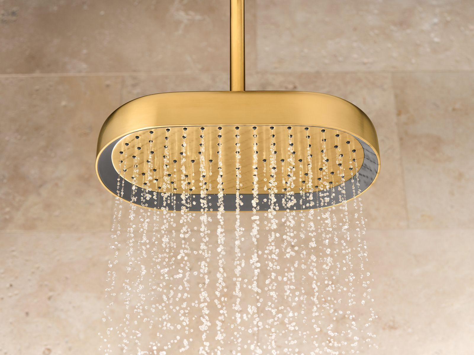 Enjoy a shower that simulates a soaking summer storm, all without wasteful overspray. This contemporary 12 oblong rainhead features Full Coverage with Katalyst air-induction technology, which efficiently mixes air and water to produce large water droplets and deliver a powerful, consistent, full overhead spray experience. The single-function rainhead's clean good looks and durable finish coordinate with many KOHLER faucets and accessories.