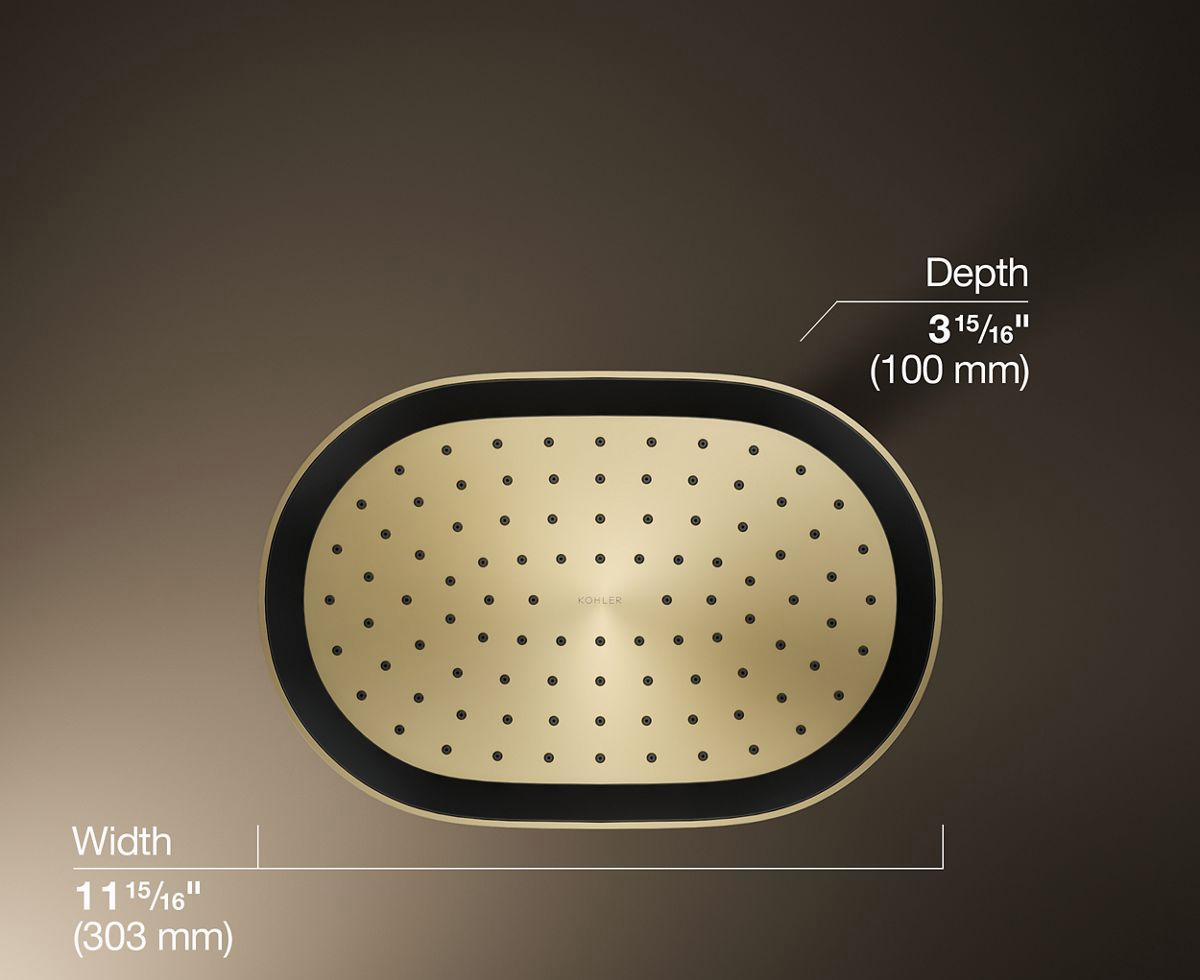 Enjoy a shower that simulates a soaking summer storm, all without wasteful overspray. This contemporary 12 oblong rainhead features Full Coverage with Katalyst air-induction technology, which efficiently mixes air and water to produce large water droplets and deliver a powerful, consistent, full overhead spray experience. The single-function rainhead's clean good looks and durable finish coordinate with many KOHLER faucets and accessories.