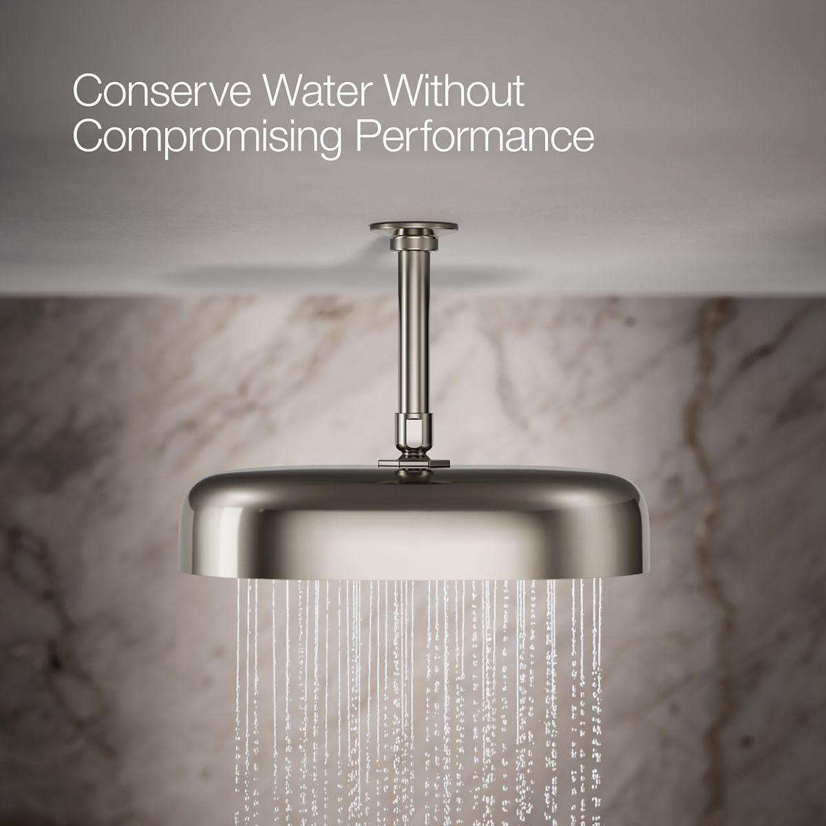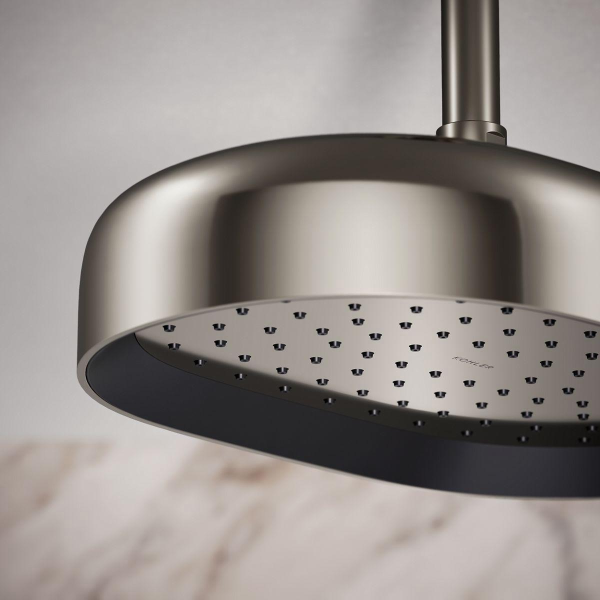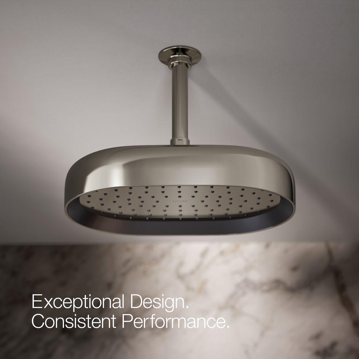 Enjoy a shower that simulates a soaking summer storm, all without wasteful overspray. This contemporary 12 oblong rainhead features Full Coverage with Katalyst air-induction technology, which efficiently mixes air and water to produce large water droplets and deliver a powerful, consistent, full overhead spray experience. The single-function rainhead's clean good looks and durable finish coordinate with many KOHLER faucets and accessories.
