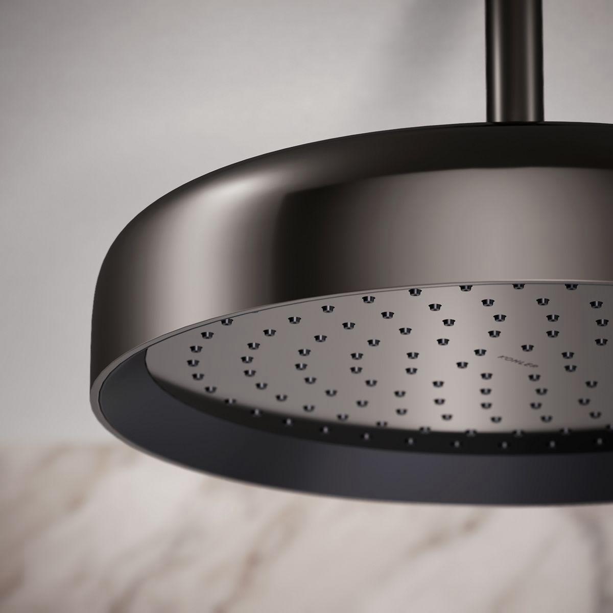 Enjoy a shower that simulates a soaking summer storm, all without wasteful overspray. This contemporary 12 round rainhead features Full Coverage with Katalyst air-induction technology, which efficiently mixes air and water to produce large water droplets and deliver a powerful, consistent, full overhead spray experience. The single-function rainhead's clean good looks and durable finish coordinate with many KOHLER faucets and accessories.