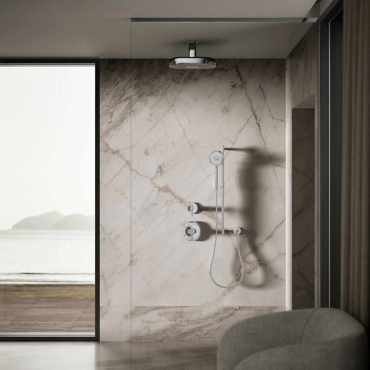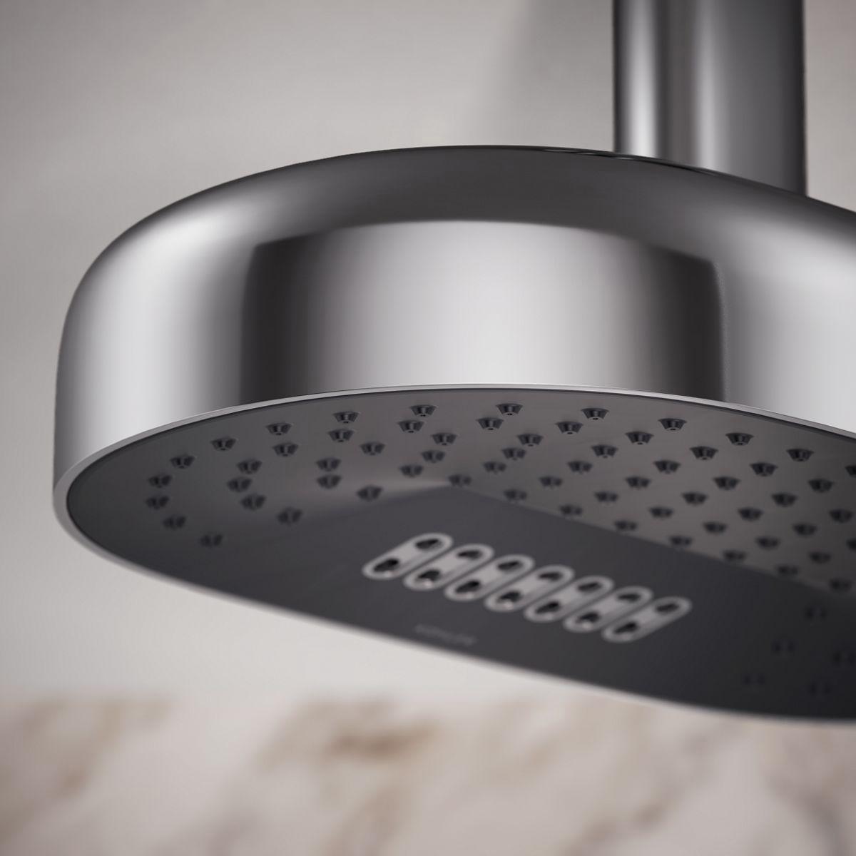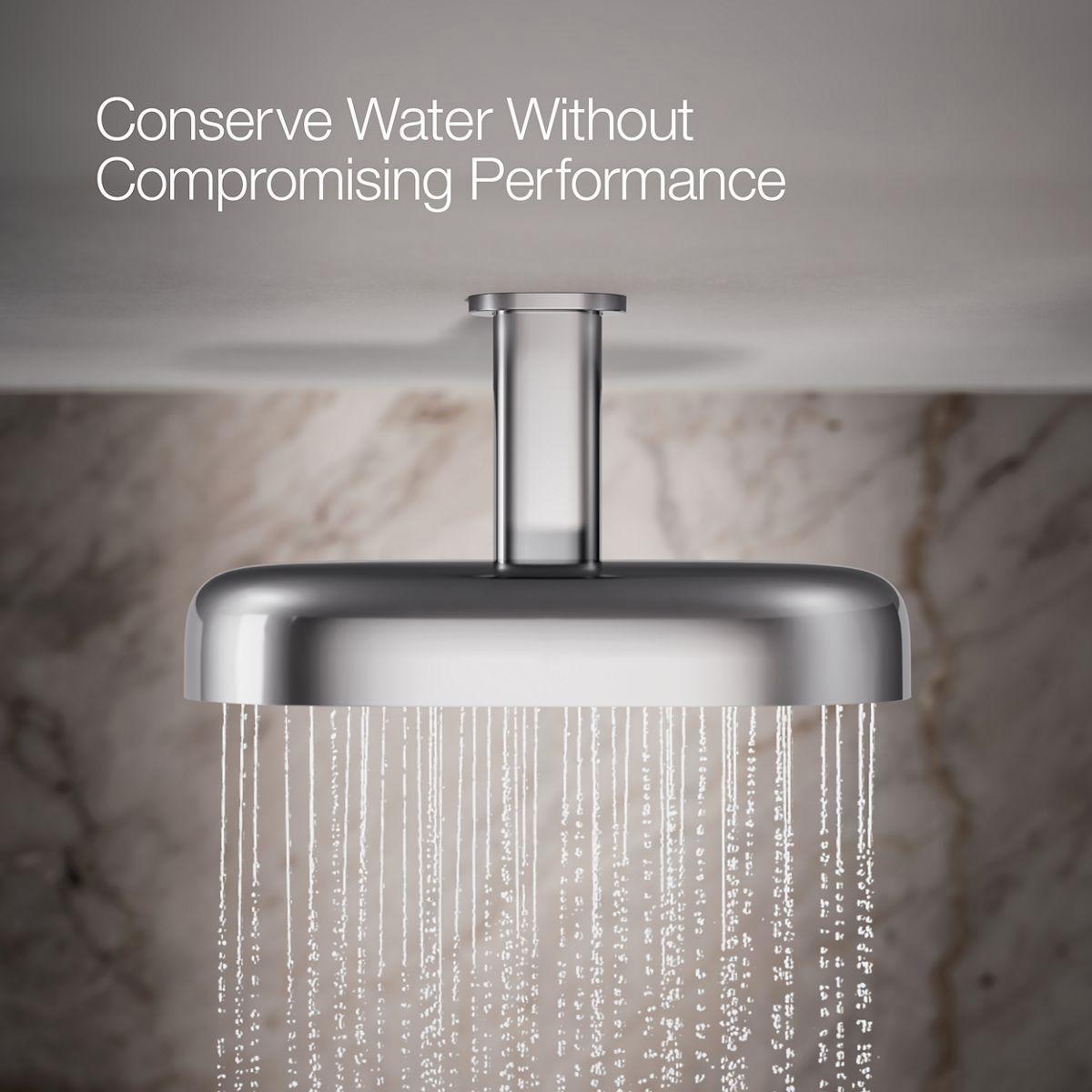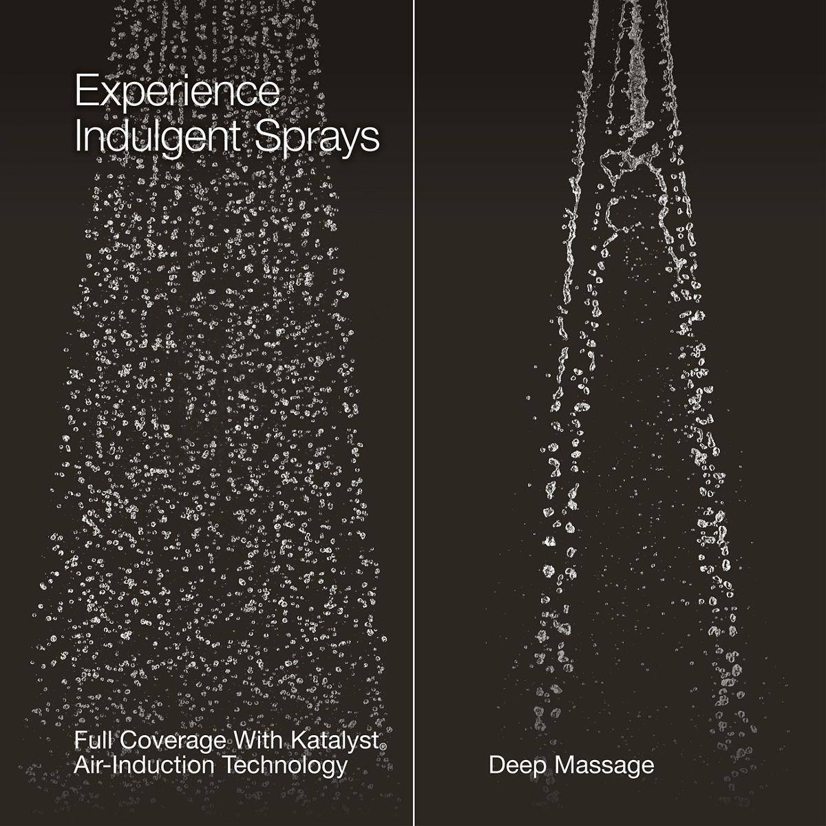 Relax in a shower that simulates a warm summer rain and targets sore shoulders with swirling kinetic streams—two distinct experiences, each available separately within one rainhead at a water-saving 1.75 gpm flow rate. Choose from Full Coverage with Katalyst air-induction technology, mixing air and water to produce large water droplets for a powerful, consistent overhead shower spray experience, and more-focused Deep Massage kneading streams, angled to relieve sore muscles. The innovative two-function rainhead also boasts a contemporary, minimalist design that coordinates with many KOHLER faucets and accessories.