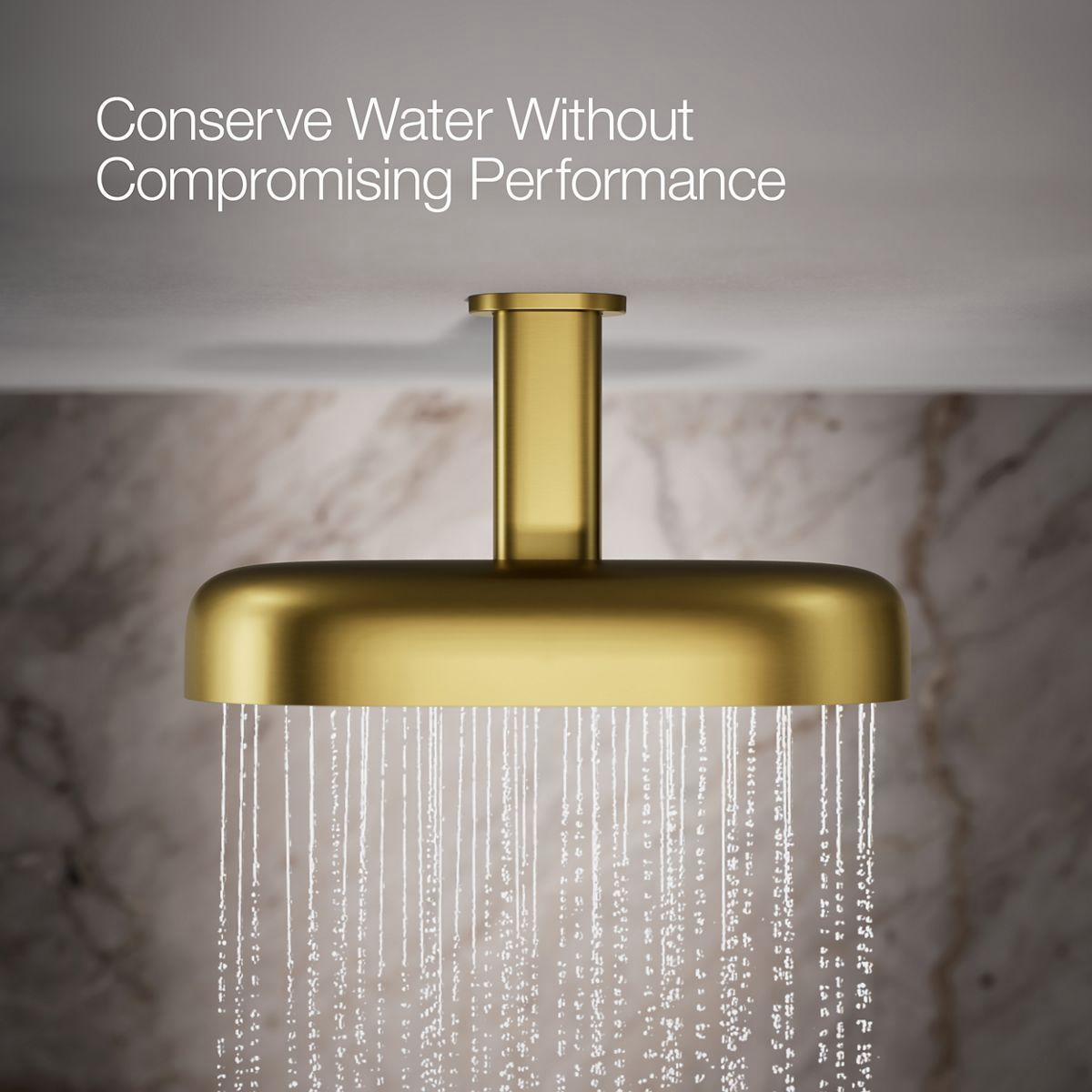 Relax in a shower that simulates a warm summer rain and targets sore shoulders with swirling kinetic streams—two distinct experiences, each available separately within one rainhead at a water-saving 1.75 gpm flow rate. Choose from Full Coverage with Katalyst air-induction technology, mixing air and water to produce large water droplets for a powerful, consistent overhead shower spray experience, and more-focused Deep Massage kneading streams, angled to relieve sore muscles. The innovative two-function rainhead also boasts a contemporary, minimalist design that coordinates with many KOHLER faucets and accessories.