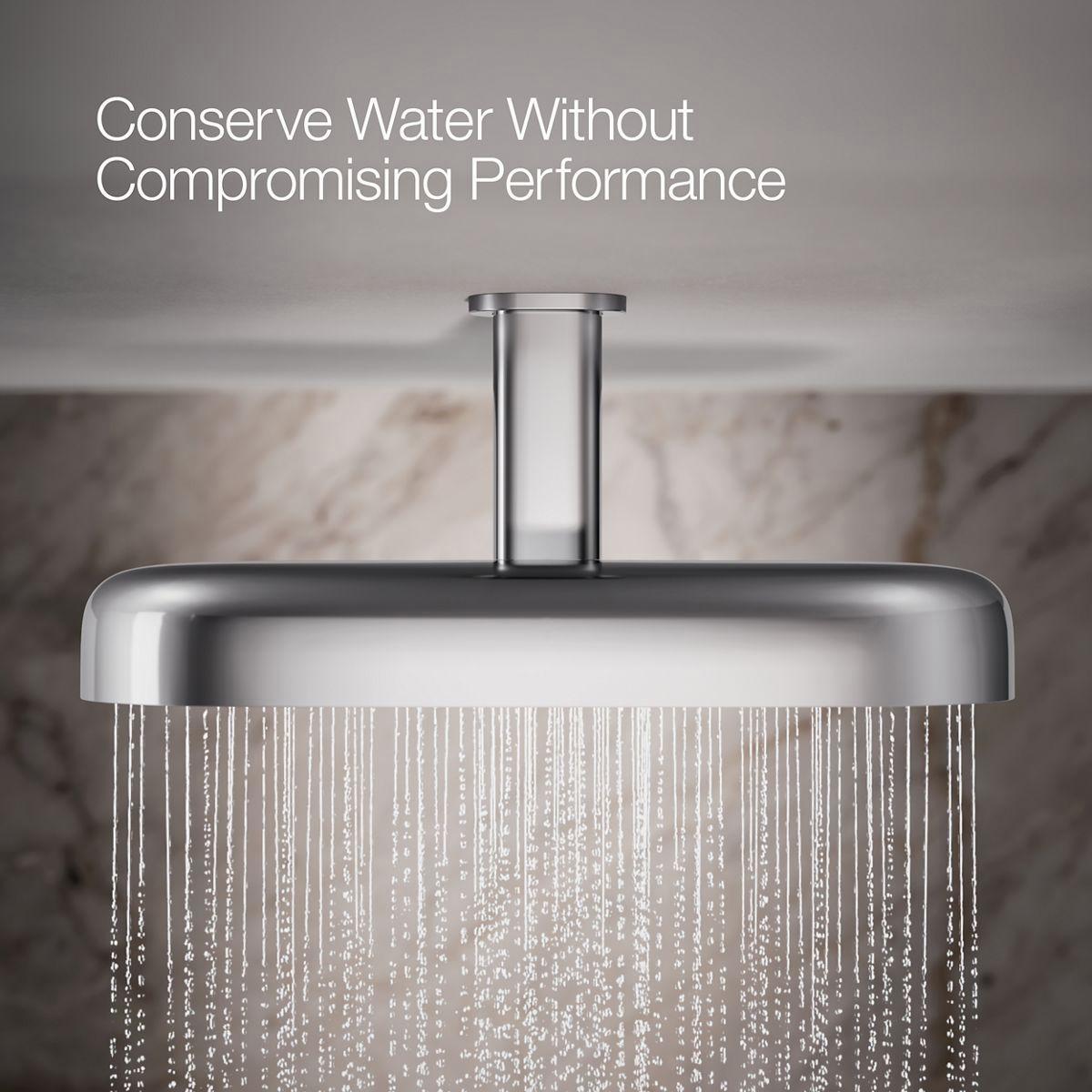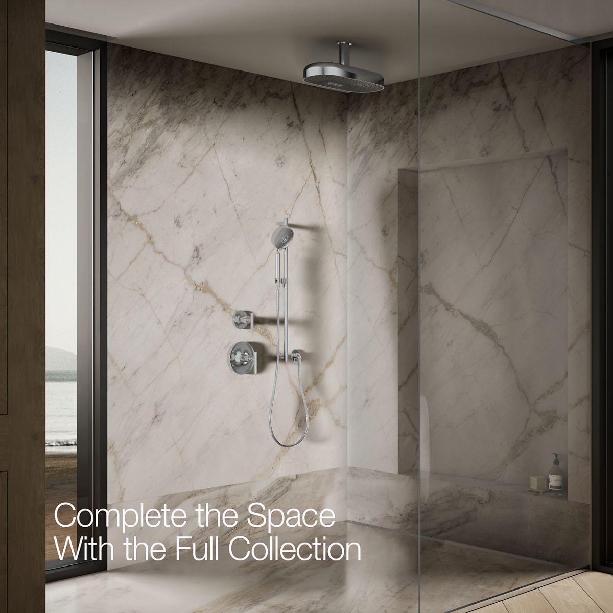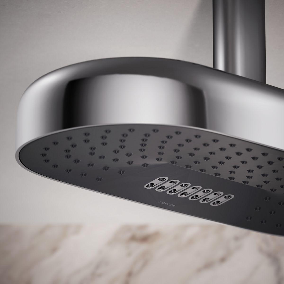 Relax in a shower that simulates a warm summer rain and targets sore shoulders with swirling kinetic streams—two distinct experiences, each available separately within one rainhead. Choose from Full Coverage with Katalyst air-induction technology, mixing air and water to produce large water droplets for a powerful, consistent overhead shower spray experience, and more-focused Deep Massage kneading streams, angled to relieve sore muscles. The innovative two-function rainhead also boasts a contemporary, minimalist design that coordinates with many KOHLER faucets and accessories.