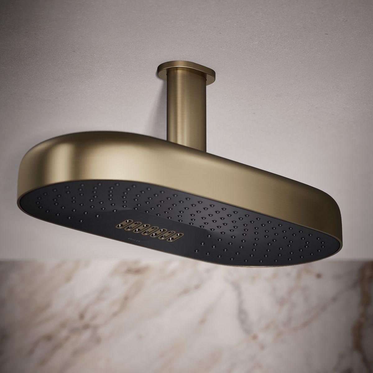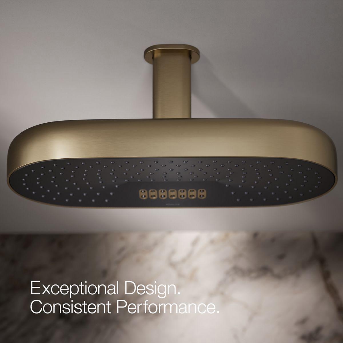 Relax in a shower that simulates a warm summer rain and targets sore shoulders with swirling kinetic streams—two distinct experiences, each available separately within one rainhead. Choose from Full Coverage with Katalyst air-induction technology, mixing air and water to produce large water droplets for a powerful, consistent overhead shower spray experience, and more-focused Deep Massage kneading streams, angled to relieve sore muscles. The innovative two-function rainhead also boasts a contemporary, minimalist design that coordinates with many KOHLER faucets and accessories.