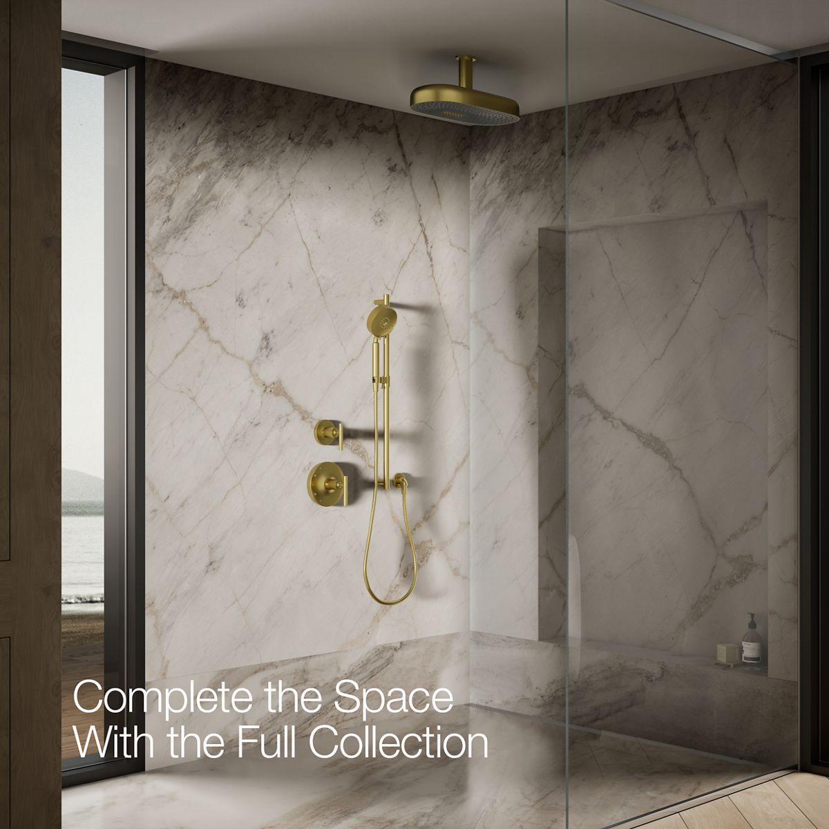 Relax in a shower that simulates a warm summer rain and targets sore shoulders with swirling kinetic streams—two distinct experiences, each available separately within one rainhead. Choose from Full Coverage with Katalyst air-induction technology, mixing air and water to produce large water droplets for a powerful, consistent overhead shower spray experience, and more-focused Deep Massage kneading streams, angled to relieve sore muscles. The innovative two-function rainhead also boasts a contemporary, minimalist design that coordinates with many KOHLER faucets and accessories.