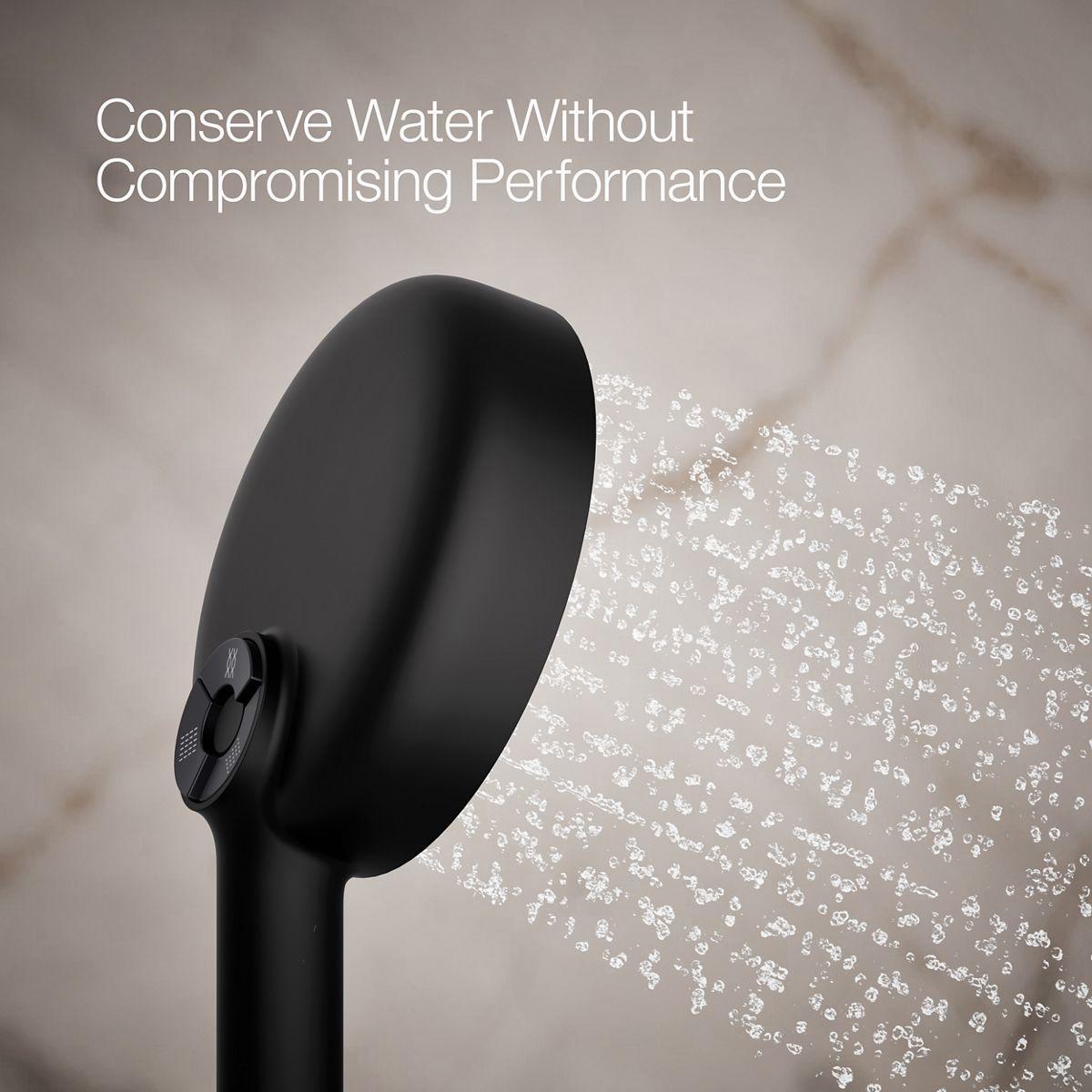 Enjoy the flexibility of a handshower that rinses, restores, and targets sore muscles—all at the touch of a button. The Statement round multifunction handshower lets you choose between Full Coverage with Katalyst air-induction technology for large luxurious water drops, a super-fine silky Cloud spray experience, and more focused, Deep Massage kinetic cross-streams. The three-function handshower features an intuitive mode selector button for switch the spray. Its sleek, minimalist design complements many KOHLER faucets and accessories.