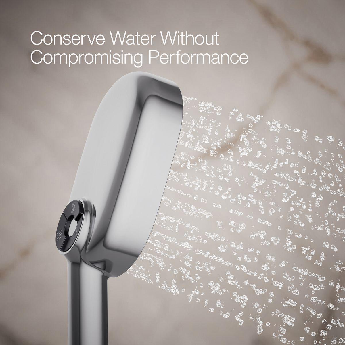 Enjoy the flexibility of a handshower that rinses, restores, and targets sore muscles—all at the touch of a button. The Statement multifunction handshower lets you choose between the Full Coverage with Katalyst air-induction technology for large luxurious water drops, a super-fine silky Cloud spray experience, and more focused, Deep Massage kinetic cross-streams. The multifunction oblong handshower features an intuitive mode selector button for switching the stream at your fingertips. Its sleek, minimalist design complements many other KOHLER faucets and accessories.