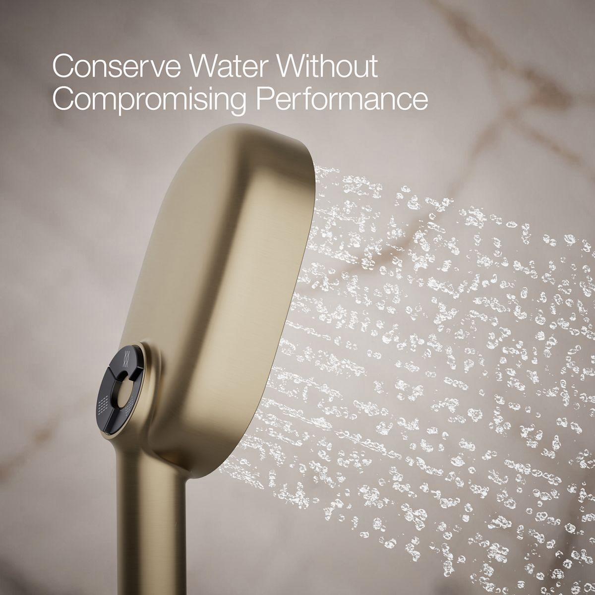 Enjoy the flexibility of a handshower that rinses, restores, and targets sore muscles—all at the touch of a button, while conserving water. The Statement multifunction handshower with 1.75 gpm flow rate lets you choose between Full Coverage with Katalyst air-induction technology for large luxurious water drops, a super-fine silky Cloud spray experience, and more focused, Deep Massage kinetic cross-streams. The three-function oblong handshower features an intuitive mode selector button for switch the spray. Its sleek, minimalist design complements many KOHLER faucets and accessories.