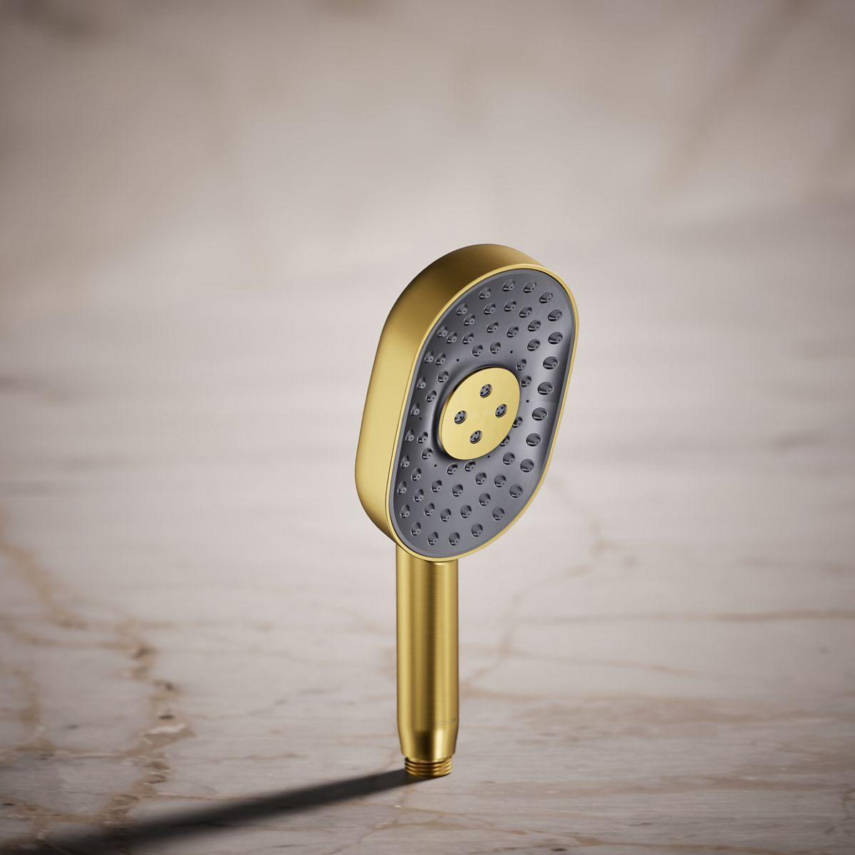 Enjoy the flexibility of a handshower that rinses, restores, and targets sore muscles—all at the touch of a button. The Statement multifunction handshower lets you choose between the Full Coverage with Katalyst air-induction technology for large luxurious water drops, a super-fine silky Cloud spray experience, and more focused, Deep Massage kinetic cross-streams. The multifunction oblong handshower features an intuitive mode selector button for switching the stream at your fingertips. Its sleek, minimalist design complements many other KOHLER faucets and accessories.
