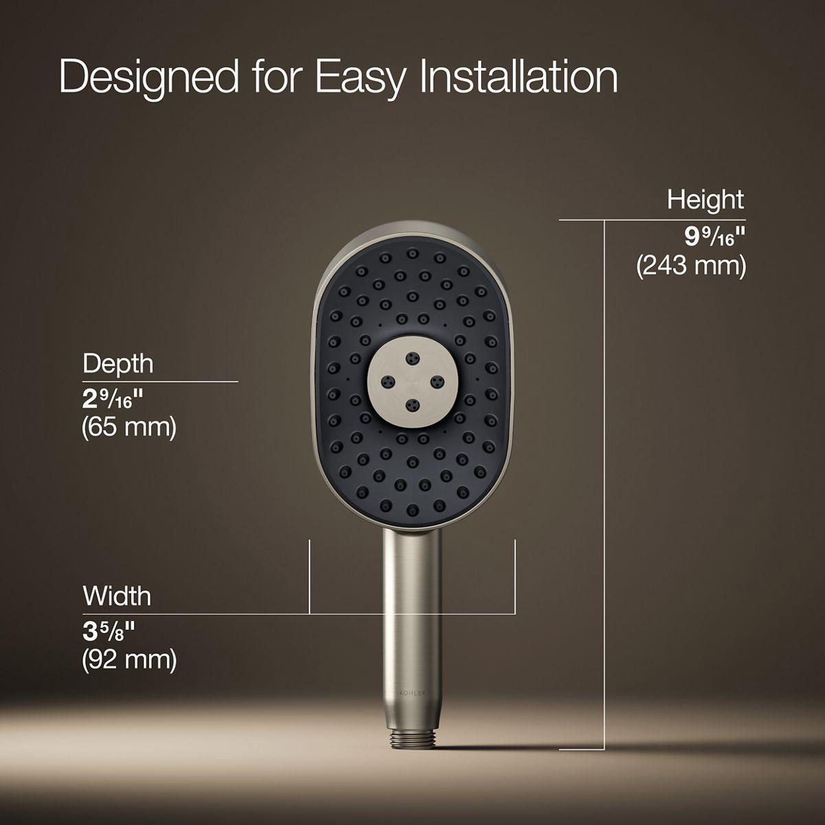 Enjoy the flexibility of a handshower that rinses, restores, and targets sore muscles—all at the touch of a button, while conserving water. The Statement multifunction handshower with 1.75 gpm flow rate lets you choose between Full Coverage with Katalyst air-induction technology for large luxurious water drops, a super-fine silky Cloud spray experience, and more focused, Deep Massage kinetic cross-streams. The three-function oblong handshower features an intuitive mode selector button for switch the spray. Its sleek, minimalist design complements many KOHLER faucets and accessories.