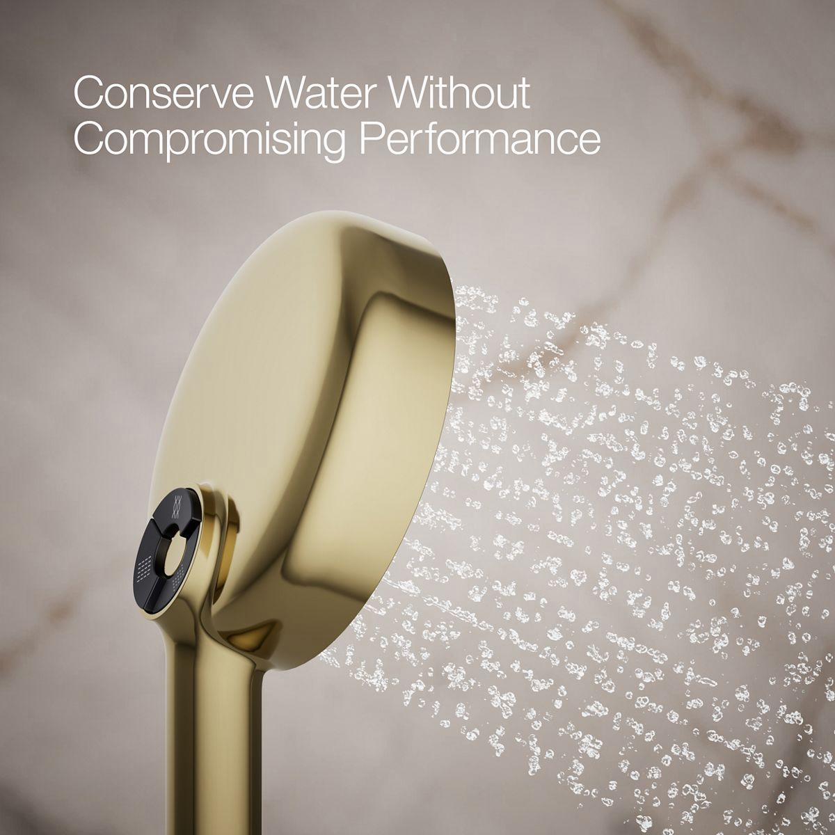 Enjoy the flexibility of a handshower that rinses, restores, and targets sore muscles—all at the touch of a button. The Statement round multifunction handshower lets you choose between Full Coverage with Katalyst air-induction technology for large luxurious water drops, a super-fine silky Cloud spray experience, and more focused, Deep Massage kinetic cross-streams. The three-function handshower features an intuitive mode selector button for switch the spray. Its sleek, minimalist design complements many KOHLER faucets and accessories.