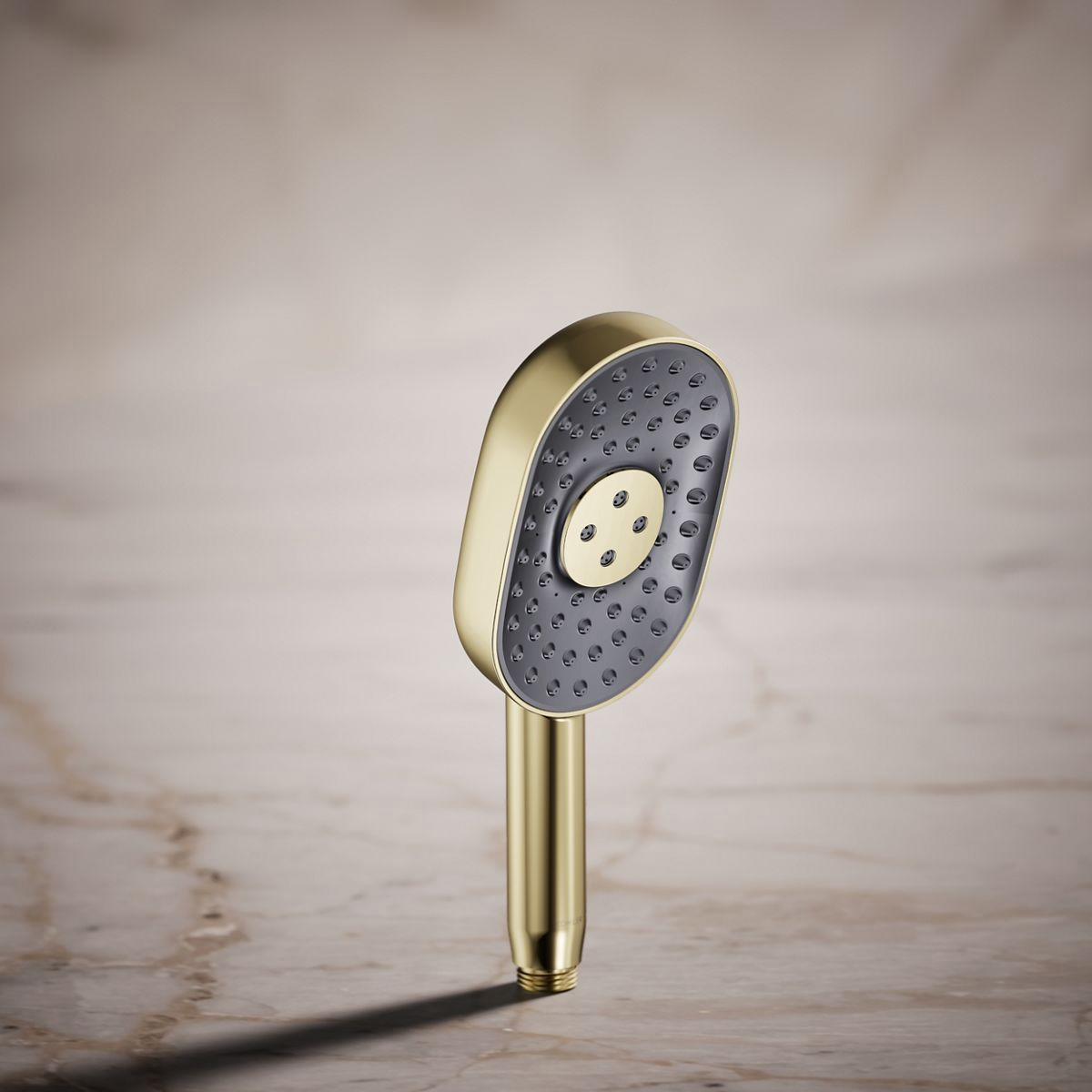 Enjoy the flexibility of a handshower that rinses, restores, and targets sore muscles—all at the touch of a button. The Statement multifunction handshower lets you choose between the Full Coverage with Katalyst air-induction technology for large luxurious water drops, a super-fine silky Cloud spray experience, and more focused, Deep Massage kinetic cross-streams. The multifunction oblong handshower features an intuitive mode selector button for switching the stream at your fingertips. Its sleek, minimalist design complements many other KOHLER faucets and accessories.