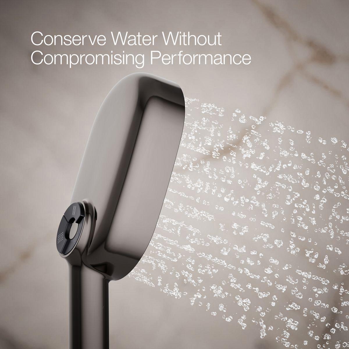 Enjoy the flexibility of a handshower that rinses, restores, and targets sore muscles—all at the touch of a button, while conserving water. The Statement multifunction handshower with 1.75 gpm flow rate lets you choose between Full Coverage with Katalyst air-induction technology for large luxurious water drops, a super-fine silky Cloud spray experience, and more focused, Deep Massage kinetic cross-streams. The three-function oblong handshower features an intuitive mode selector button for switch the spray. Its sleek, minimalist design complements many KOHLER faucets and accessories.