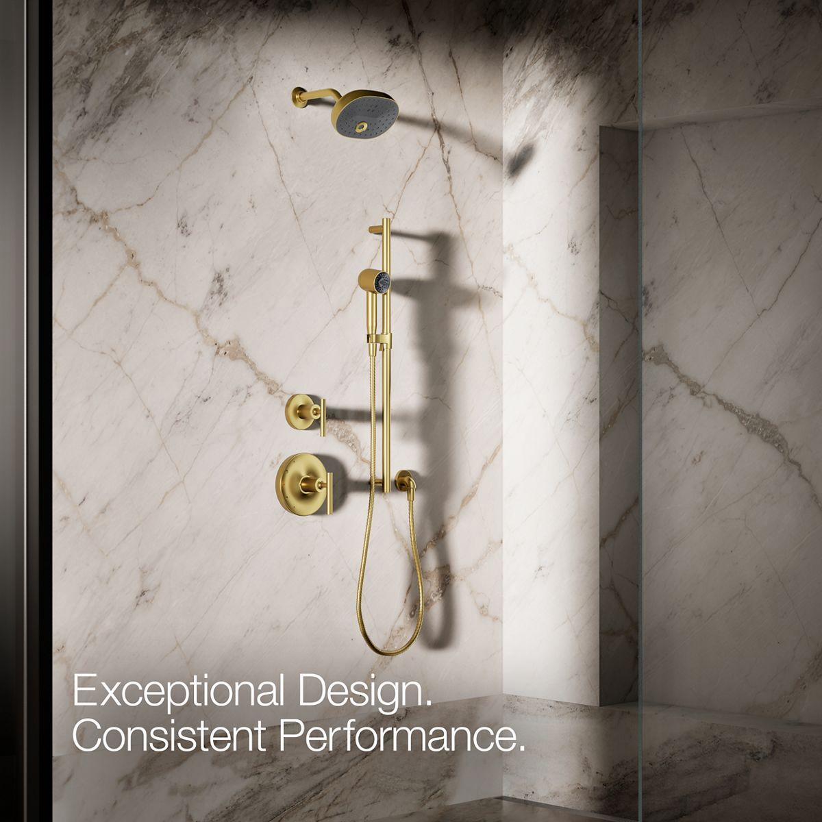 Power your shower with the flexibility of the Statement iconic 2.5 gpm handshower, featuring the unique Infinity spray that provides three spray experiences in one. The hourglass-shaped spray starts with a powerful rinse in the upper zone, converging into a massaging middle stream, then diverging into broad, everyday warmth and coverage in the lower zone. The compact barrel-shaped handshower features a sleek, minimalist design and durable finishes that coordinates with many KOHLER faucets and accessories.