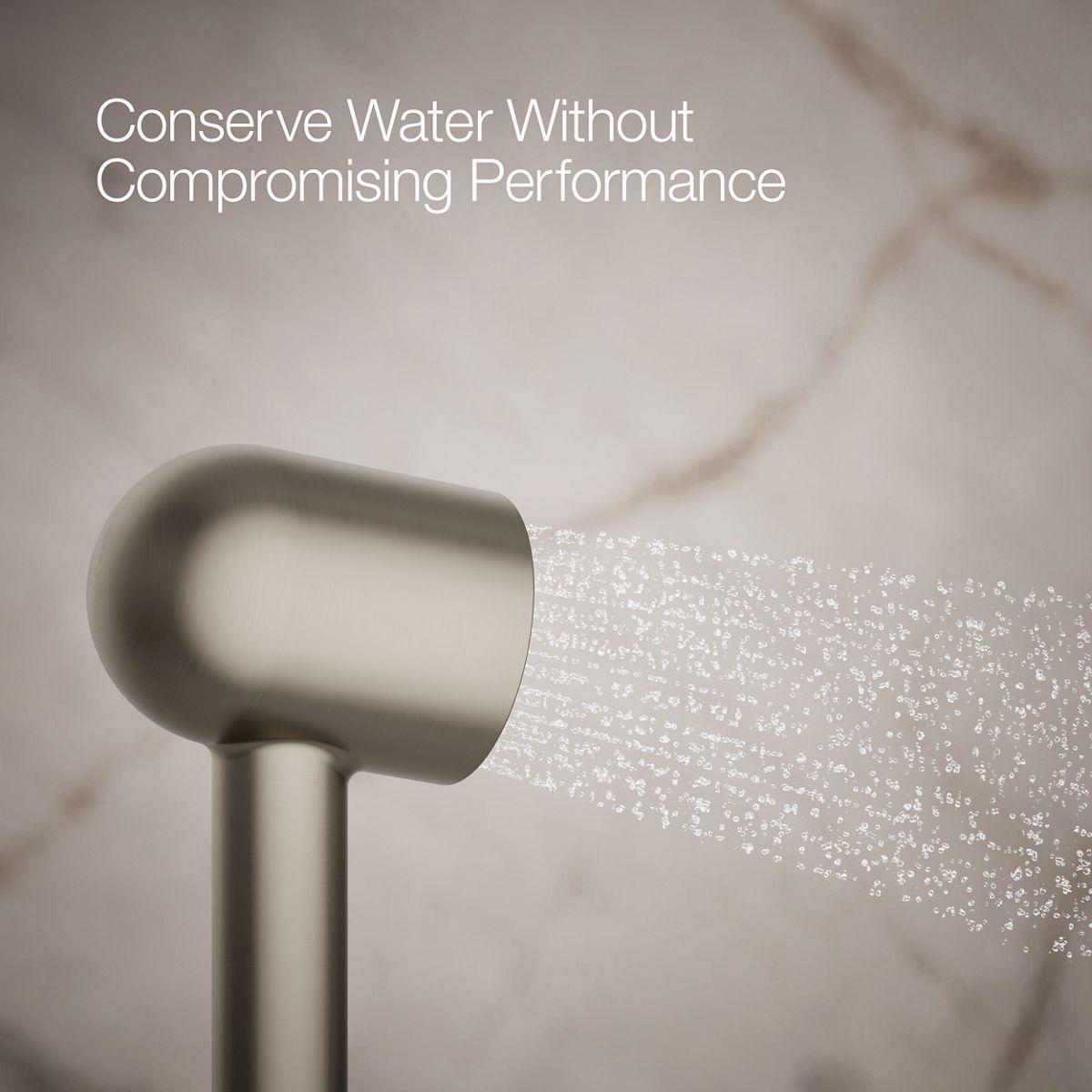 Power your shower with the flexibility of the Statement iconic 2.5 gpm handshower, featuring the unique Infinity spray that provides three spray experiences in one. The hourglass-shaped spray starts with a powerful rinse in the upper zone, converging into a massaging middle stream, then diverging into broad, everyday warmth and coverage in the lower zone. The compact barrel-shaped handshower features a sleek, minimalist design and durable finishes that coordinates with many KOHLER faucets and accessories.