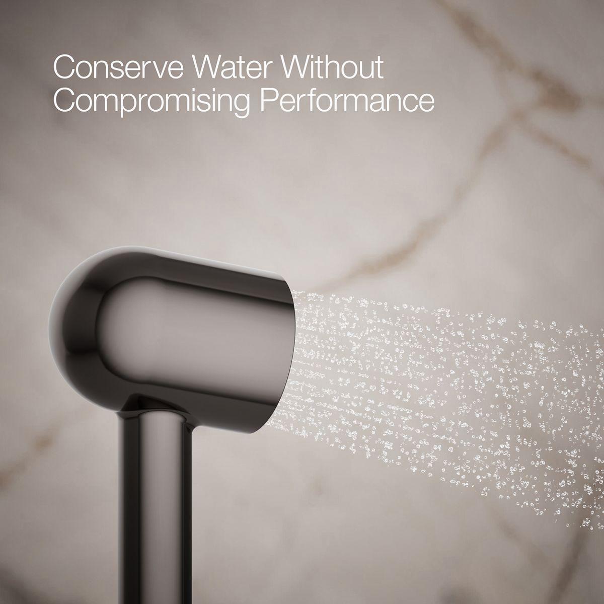 Power your shower with the flexibility of the Statement iconic 1.75 gpm handshower, featuring the unique Infinity spray that provides three spray experiences in one--all while conserving water. The hourglass-shaped spray starts with a powerful rinse in the upper zone, converging into a massaging middle stream, then diverging into broad, everyday warmth and coverage in the lower zone. The compact barrel-shaped handshower features a sleek, minimalist design and durable finishes that coordinates with many KOHLER faucets and accessories.