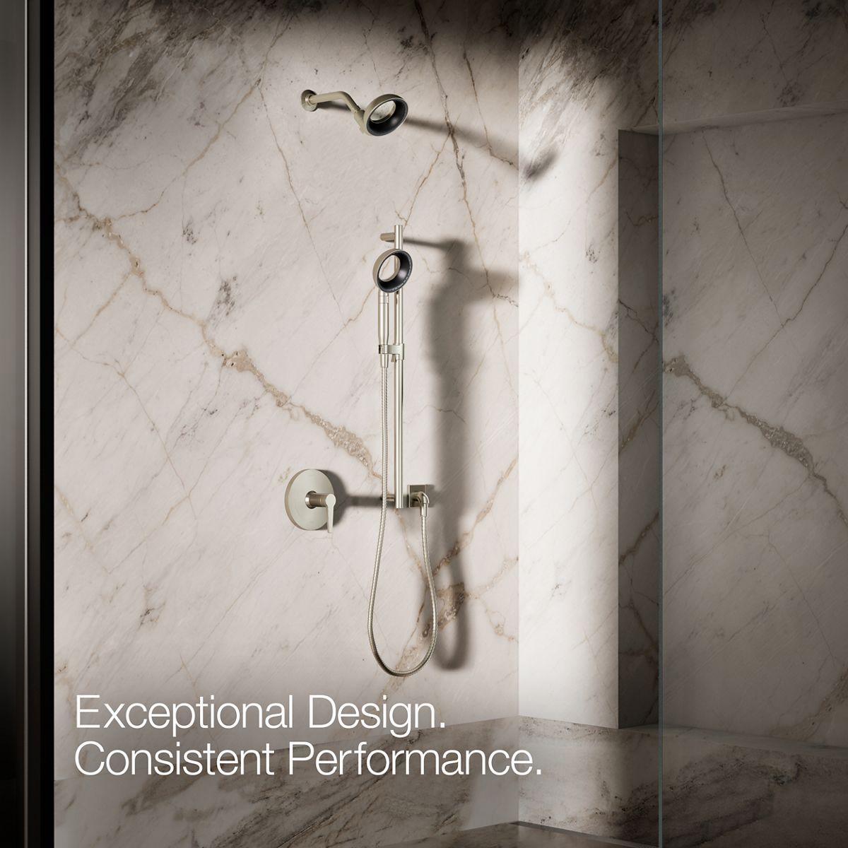 - Variable-flow lever lets you adjust from 1.5 gpm (5.7 lpm) down to 0.5 gpm (1.9 lpm) water pause for greater conservation during your shower routine.