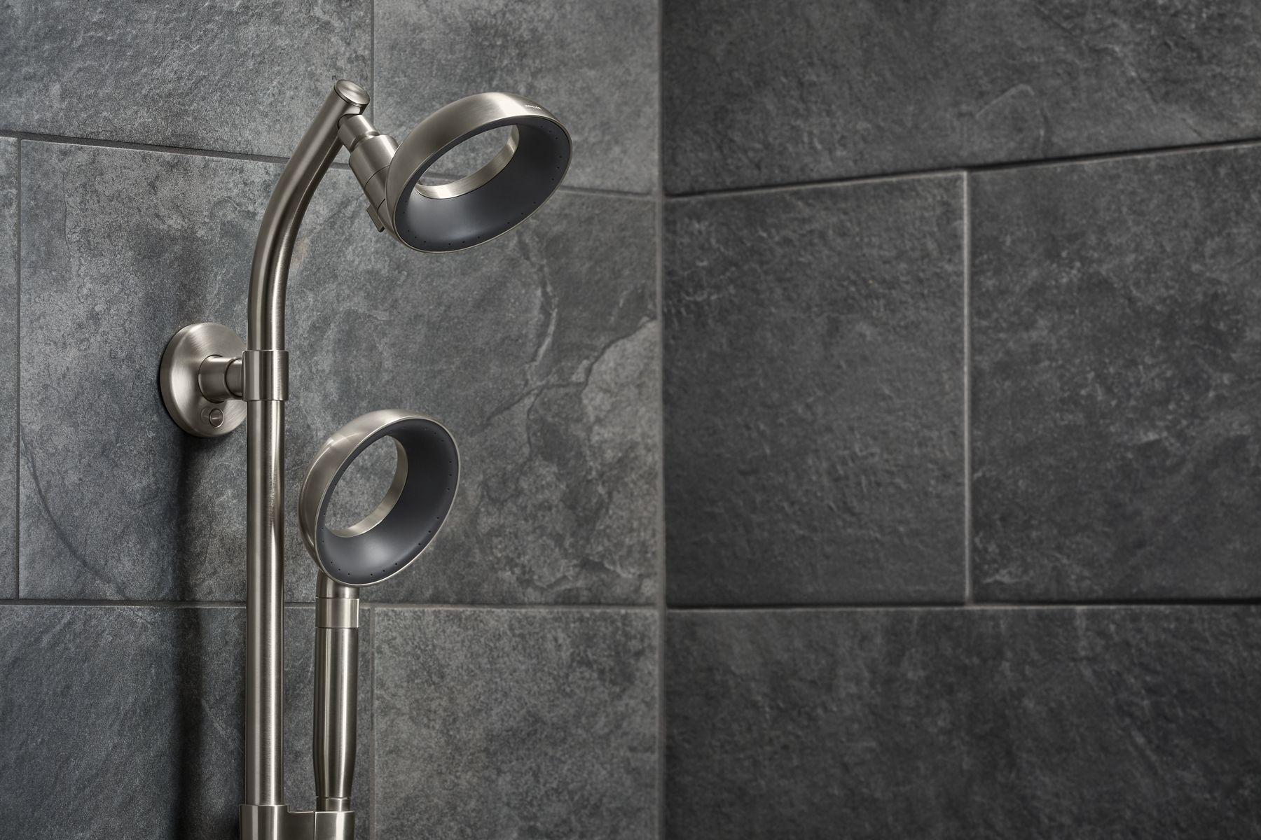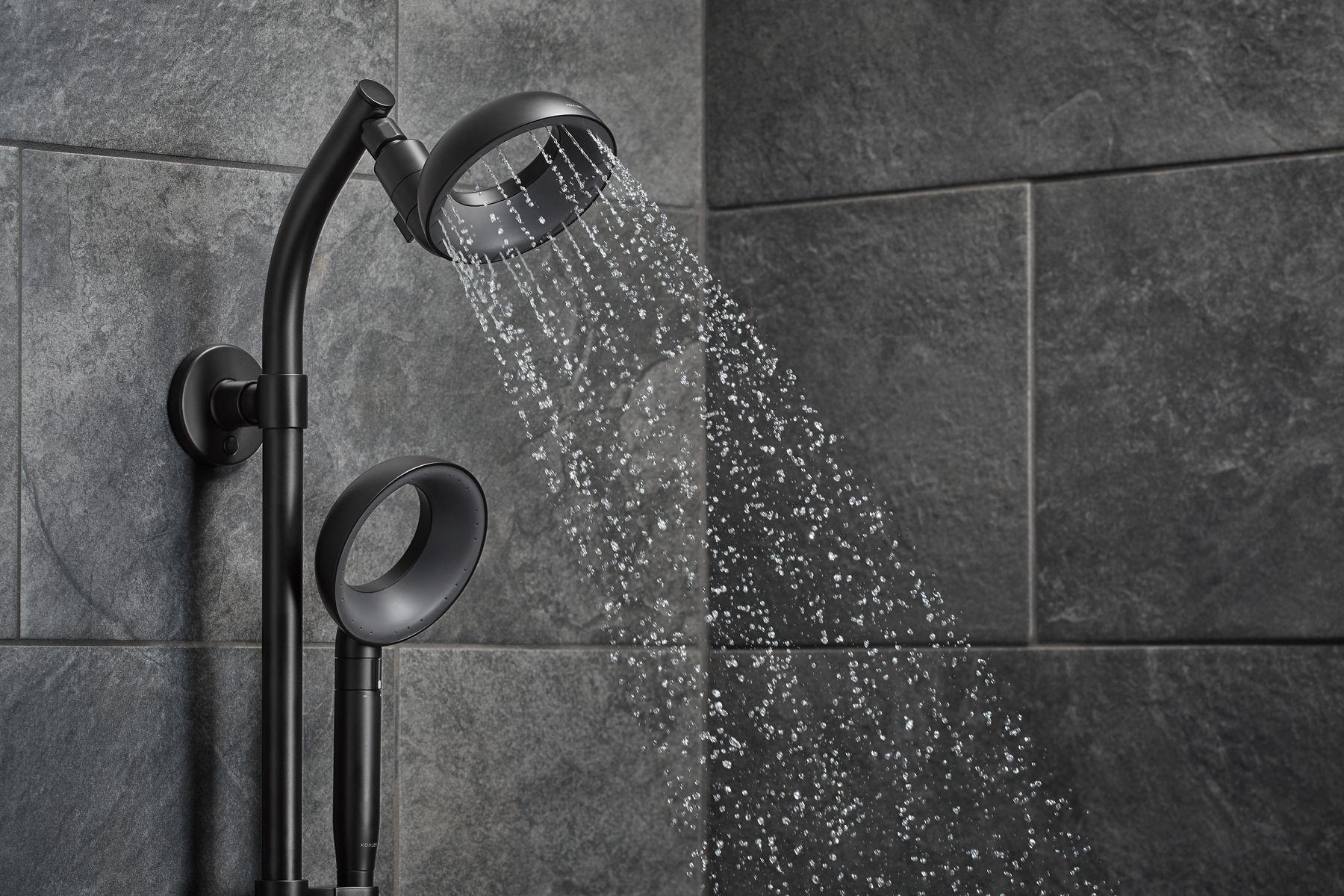 Create a luxurious two-outlet showering experience with this easy-to-install kit, which includes a Statement VES variable-flow showerhead and handshower, HydroRail-S shower column, and premium hose. Single-function showerhead and handshower deliver perfectly balanced full coverage sprays, while adjustable flow levers allow you to conserve water, if desired. Cutting-edge Katalyst technology intensifies the flow of water for a completely indulgent showering experience. The kit's artfully sculpted sprayfaces reveal simple, architectural forms that complement contemporary and minimalist baths.