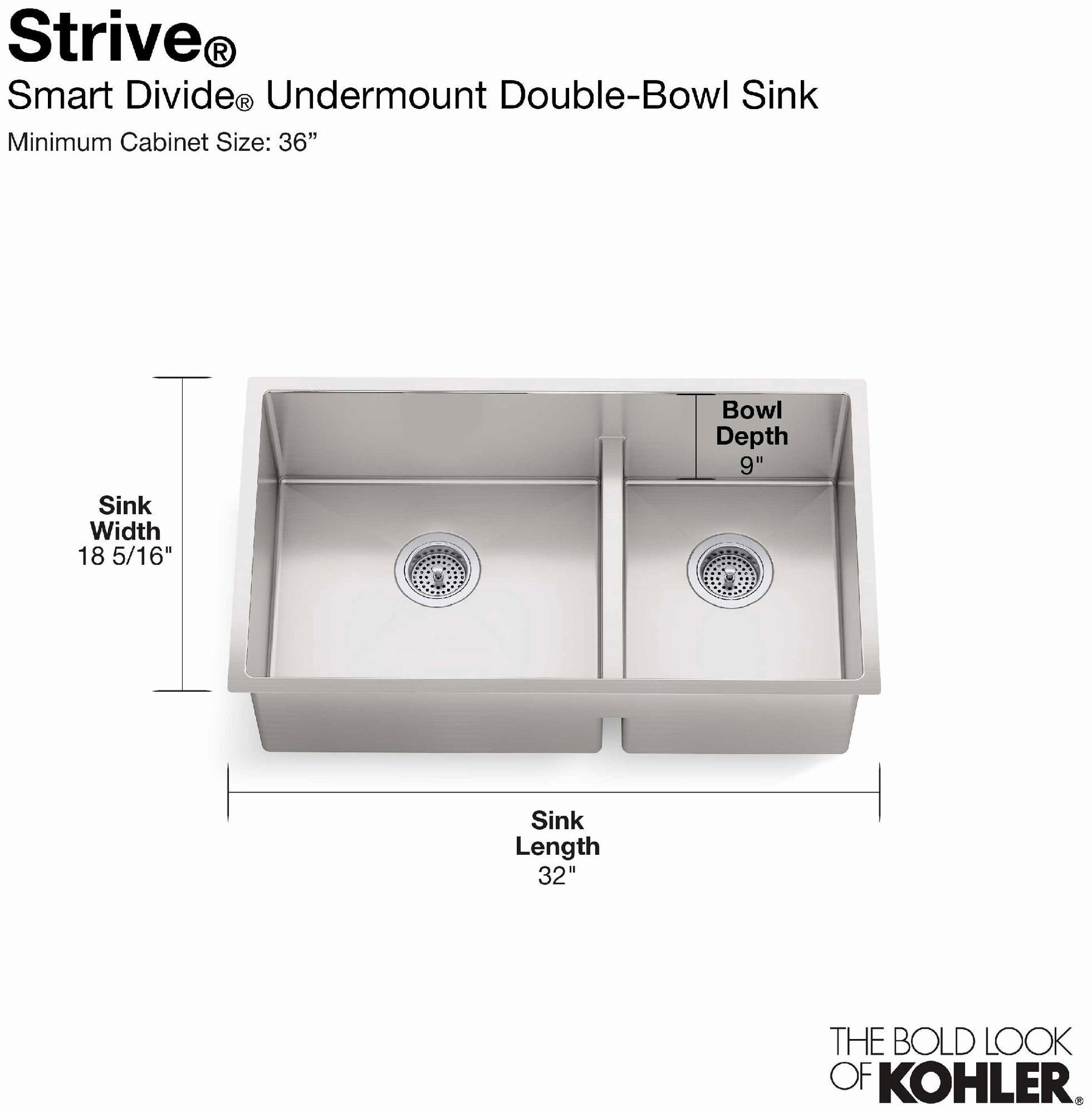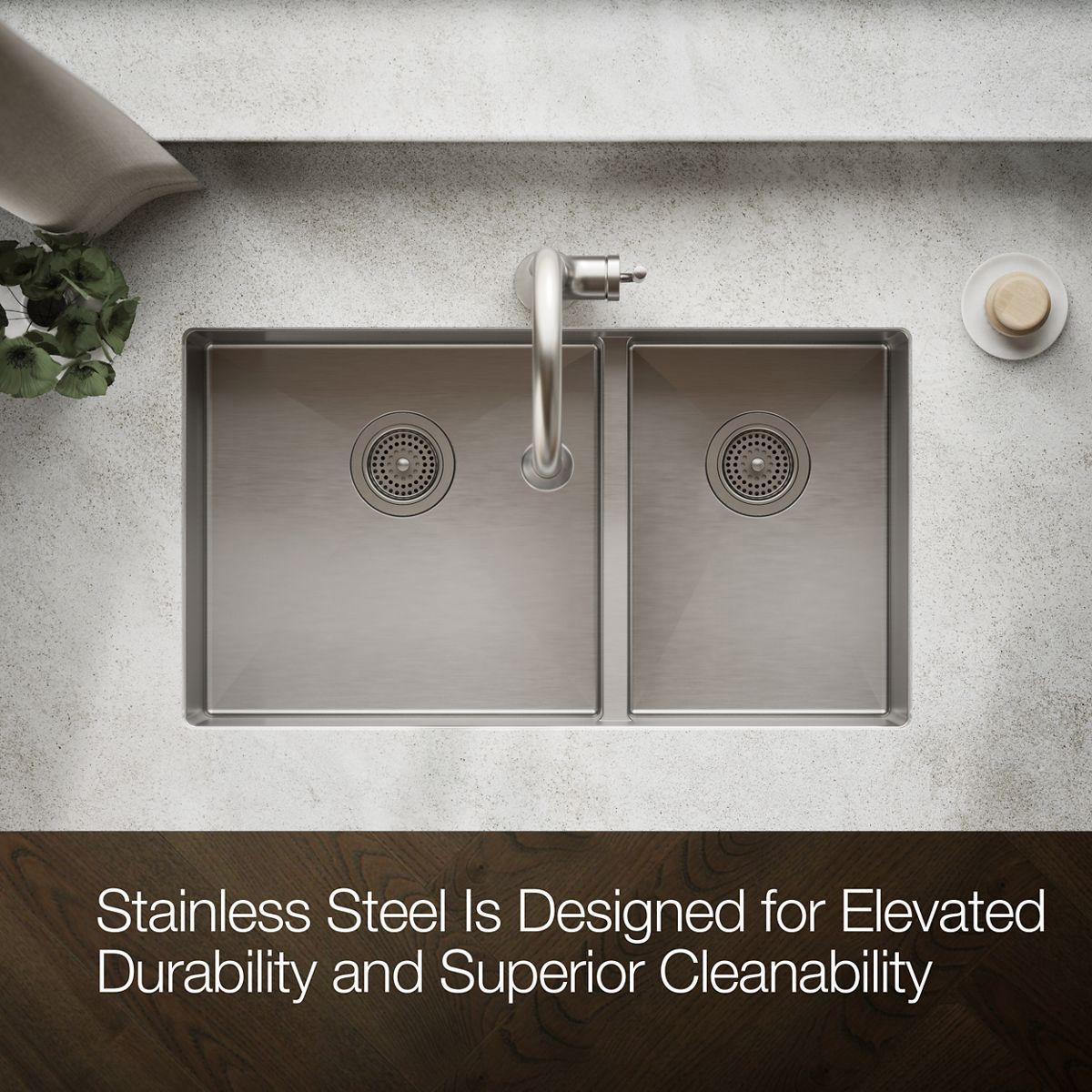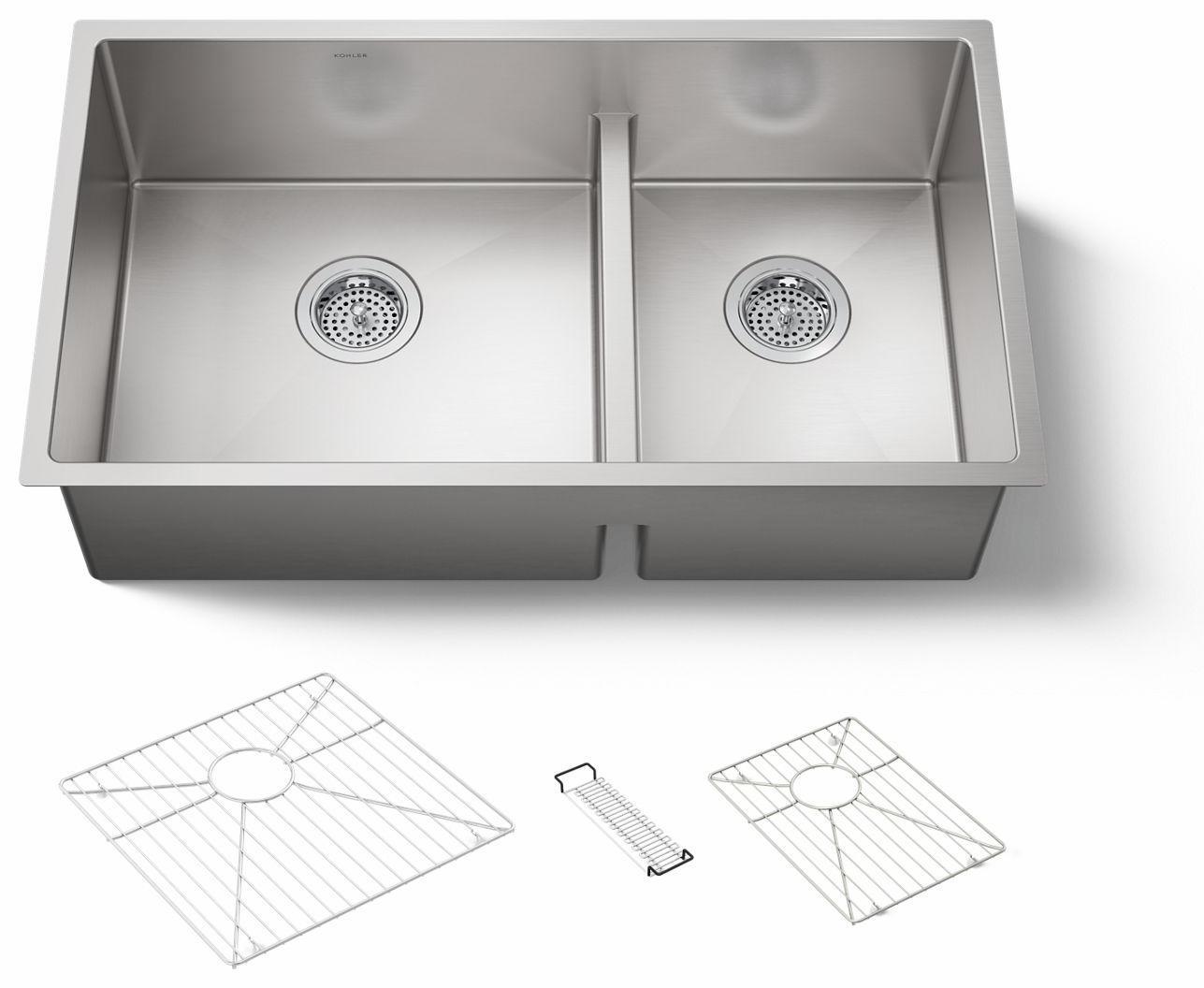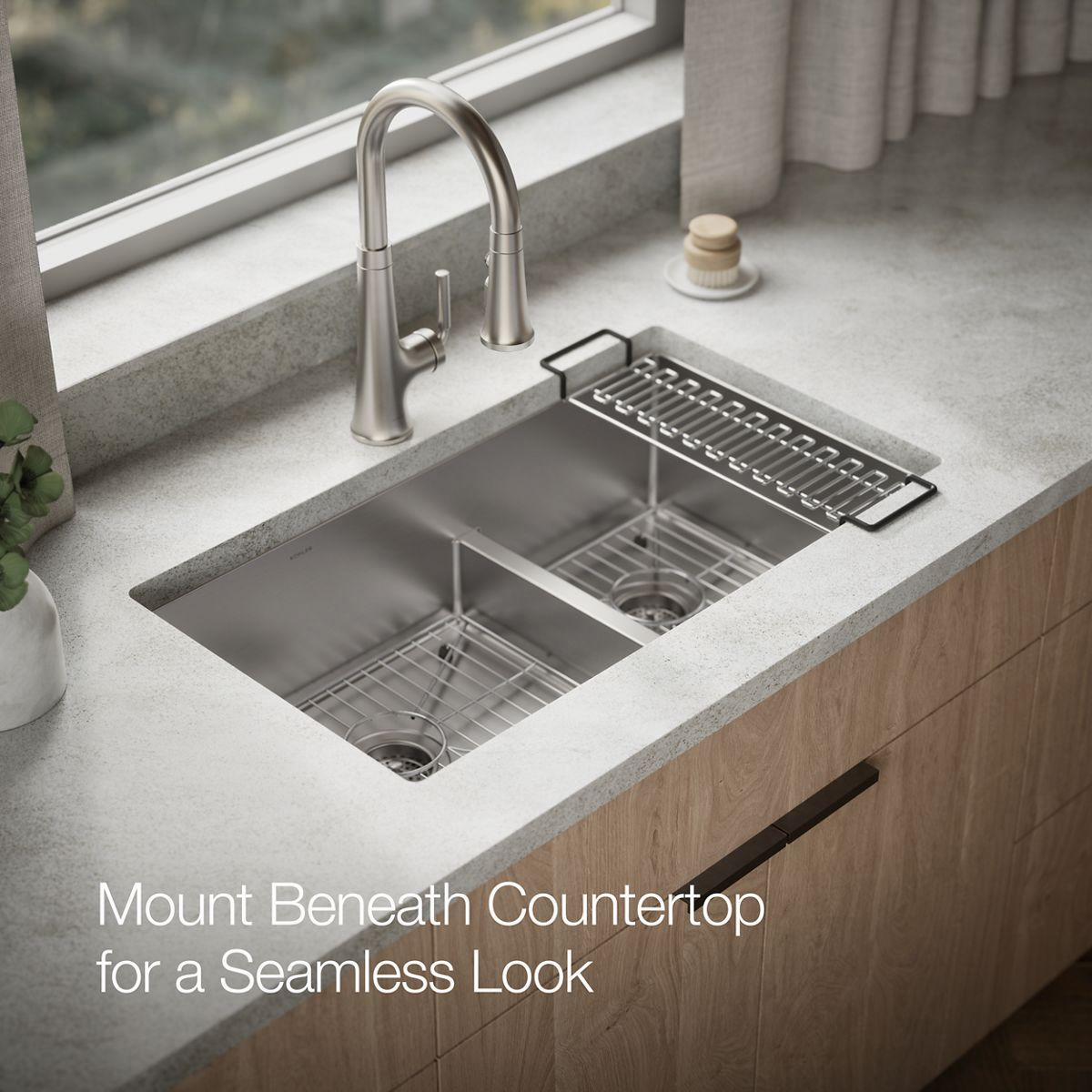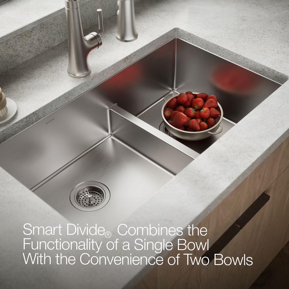 Strive 32" Smart Divide 1.75 Bowl Undermount Kitchen Sink with Rack - Stainless Steel 5284-NA Kohler