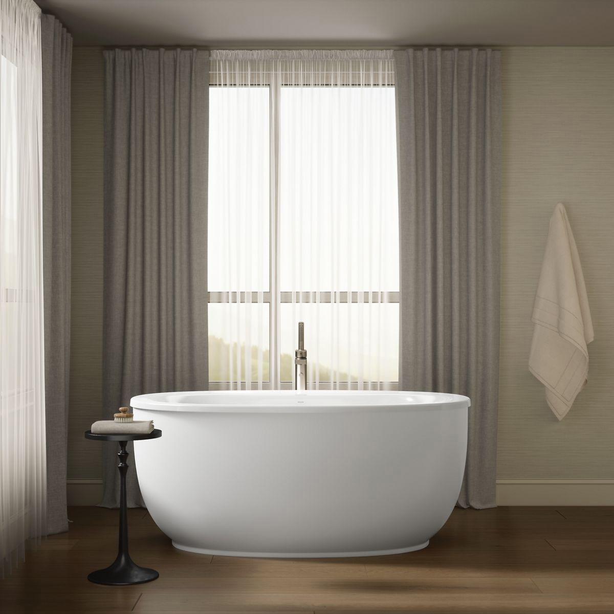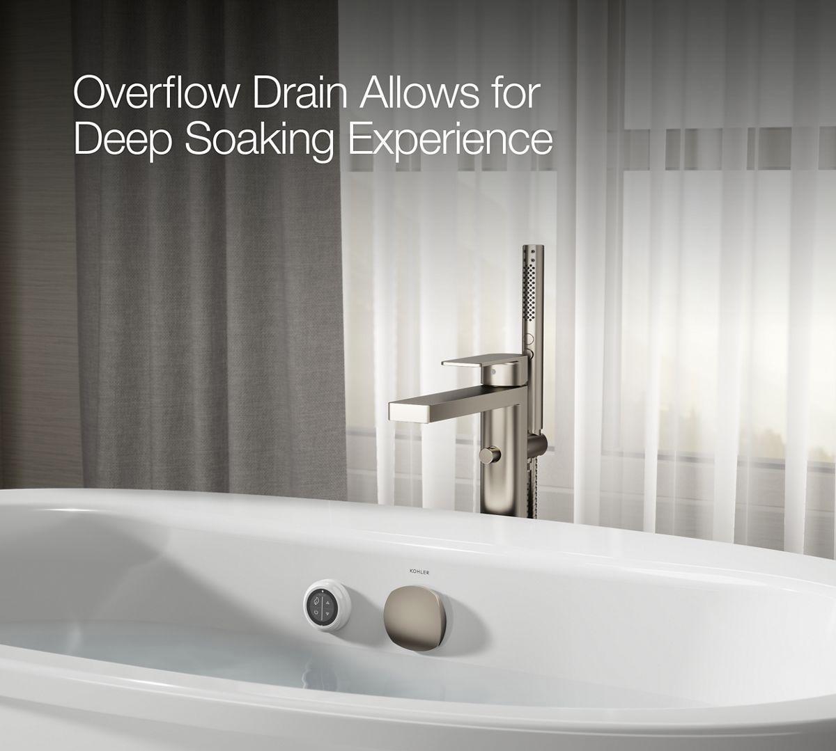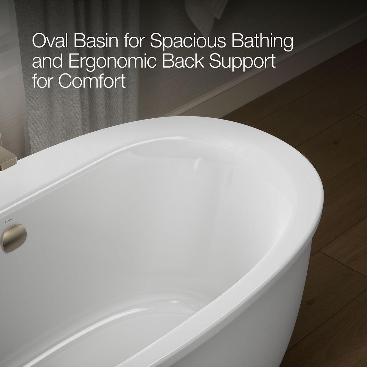 Surround yourself with tranquility and comfort in the Sunstruck freestanding bath. The ergonomic oval design supports your body for a deep, relaxing soak as the Bask heated surface warms your back, shoulders, and neck with adjustable temperature settings. With its gracefully shaped lines and fluted shroud, this versatile bath complements a wide range of bathroom styles and offers easy three-step installation.