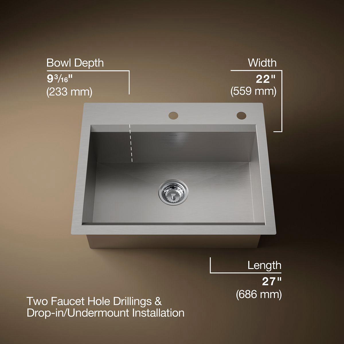 - Two faucet holes