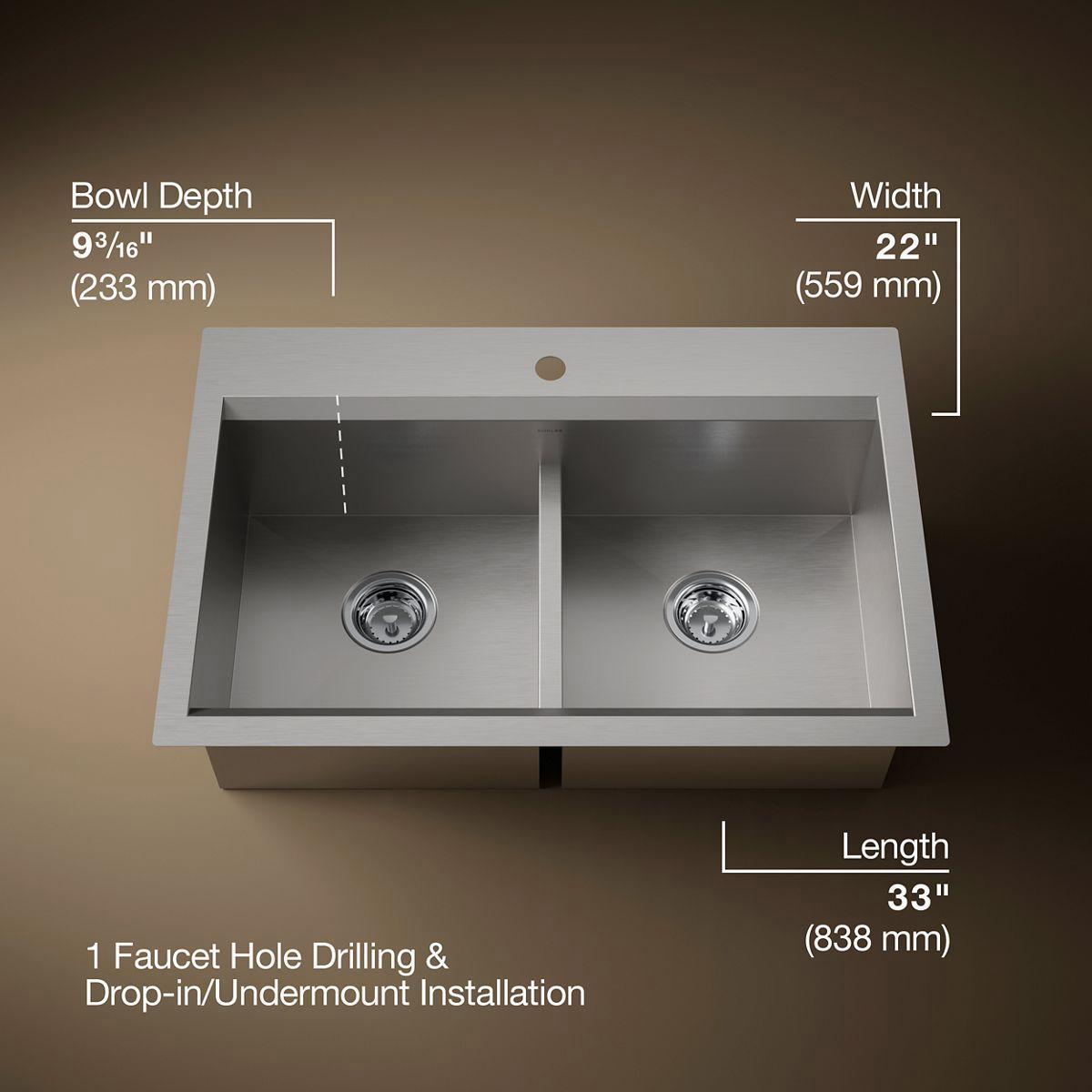 - Smart Divide® feature offers a lower bowl divider that increases workspace versatility