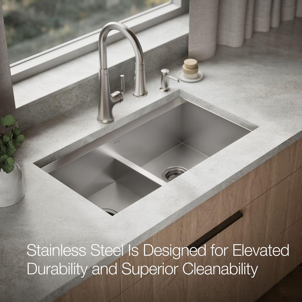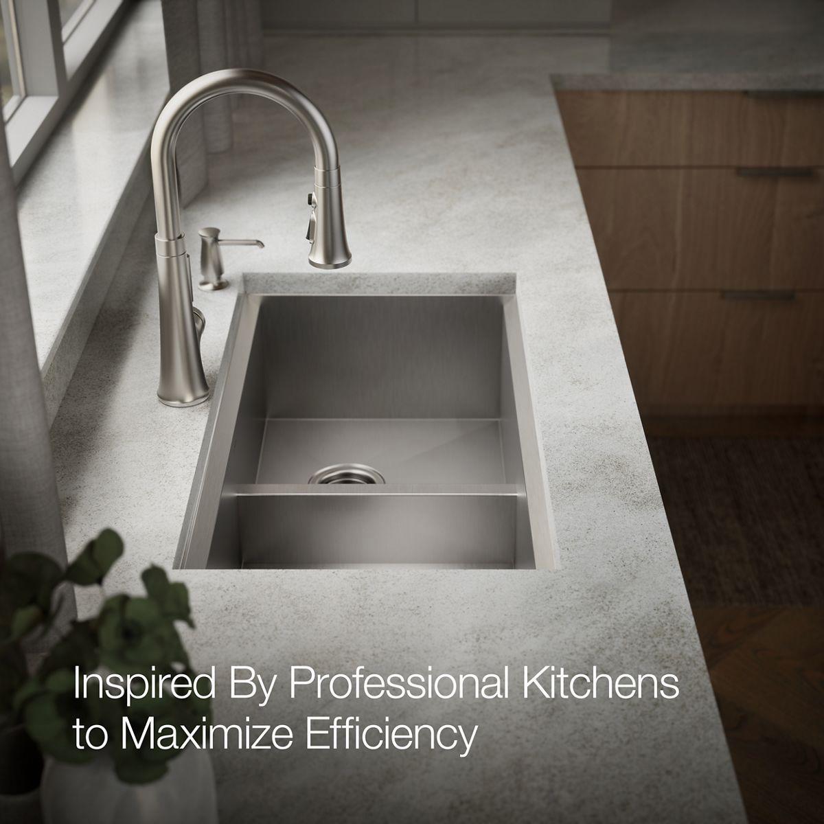- Smart Divide® feature offers a lower bowl divider that increases workspace versatility
