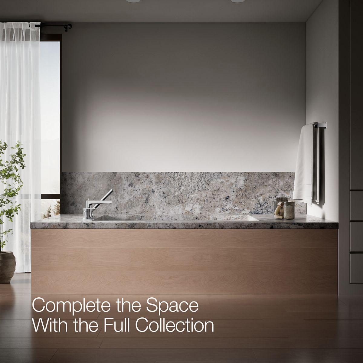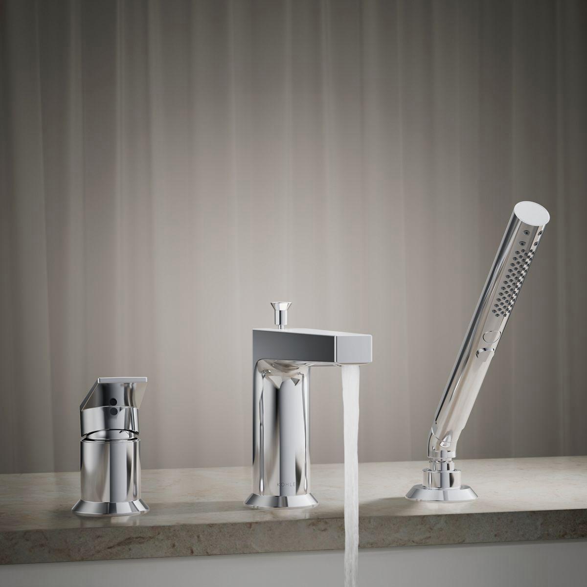 Minimalist in its design, the Taut bathroom faucet collection is a versatile style choice for transitional or contemporary environments. Coordinate with KOHLER Pitch showering components, and create a space that will look beautiful for years to come. This deck-mount bath faucet includes a handshower to enhance your bathing options.