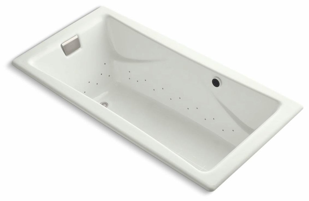 This two-person bath lets you experience the bliss of heated BubbleMassage together. Combining distinctive KOHLER styling with versatile installation options, the Tea-for-Two heated BubbleMassage air bath is an ideal choice for any bathroom. With Heated BubbleMassage hydrotherapy, airjets release thousands of heated bubbles that deliver a blissfully warm, invigorating full-body massage experience, helping to center your mind and release tension in your muscles. Constructed of durable KOHLER cast iron, this model features a contoured drain overflow that allows comfortable bathing at either end. Safeguard slip-resistant surface enhances safety.