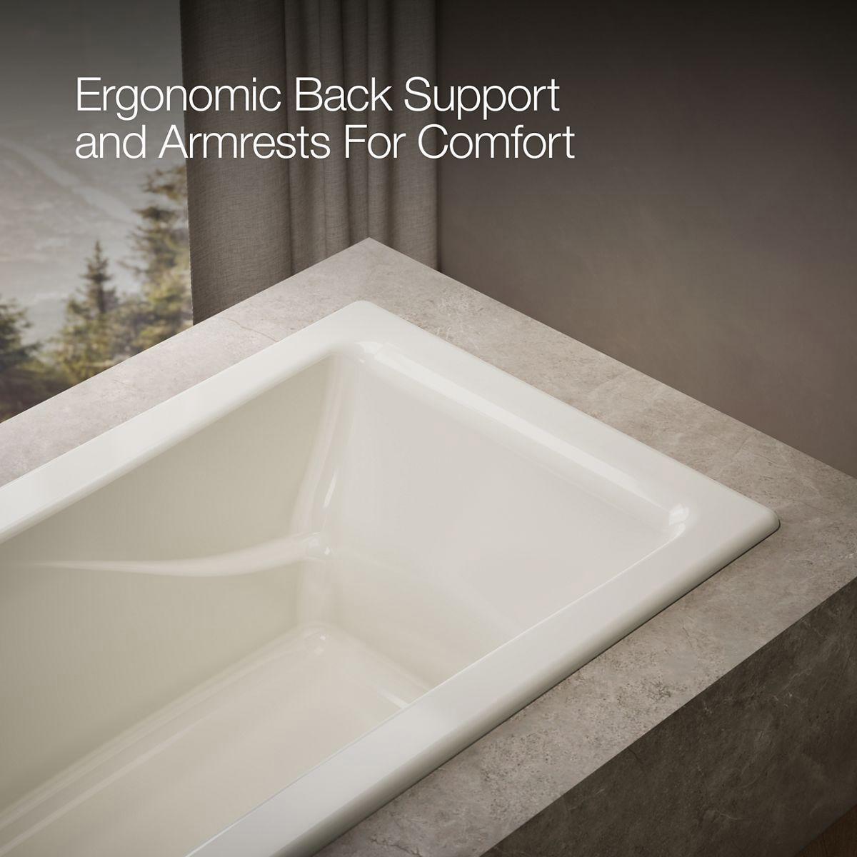 - Contoured drain overflow allows comfortable bathing at either end or room for two.