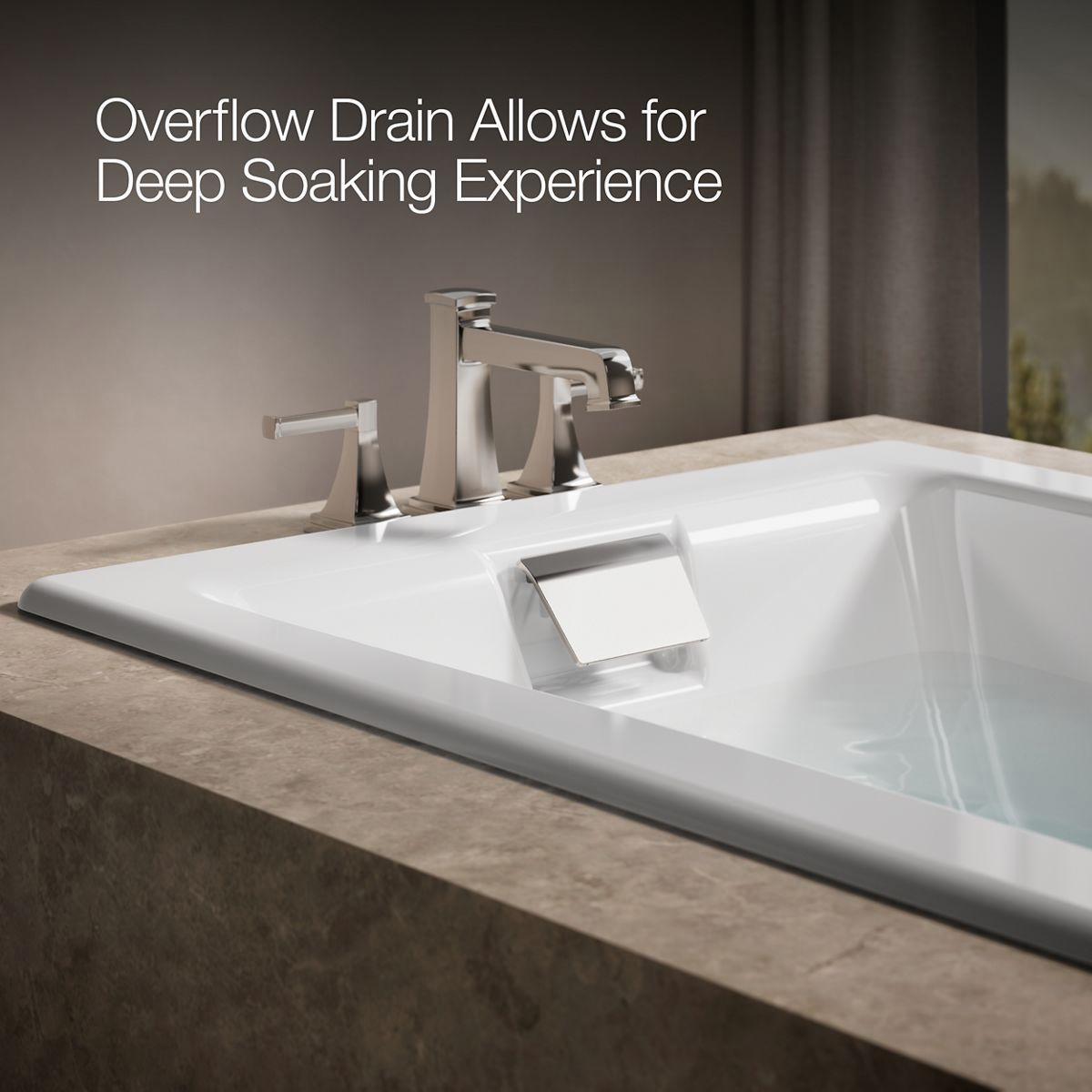 - Contoured drain overflow allows comfortable bathing at either end or room for two.