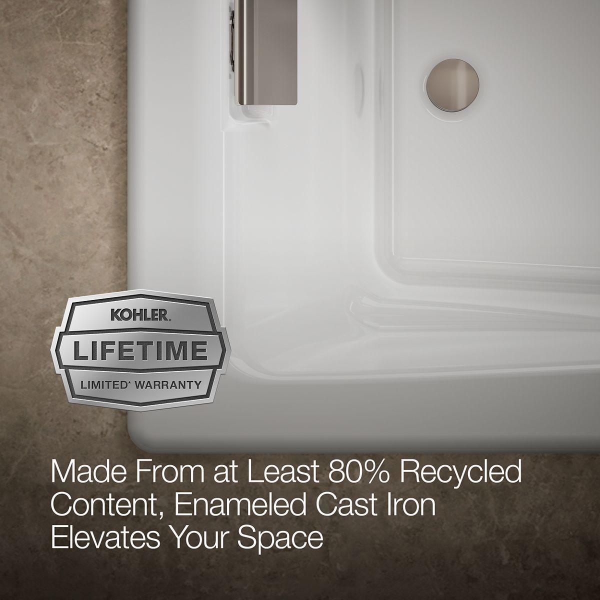 Combining distinctive KOHLER styling with versatile installation options, the Tea-for-Two bath is an ideal choice for any bathroom. This 6' model is constructed of durable KOHLER Cast Iron and features a contoured drain overflow that allows comfortable bathing at either end. This model is designed for two person bathing. Safeguard slip-resistant surface enhances safety.