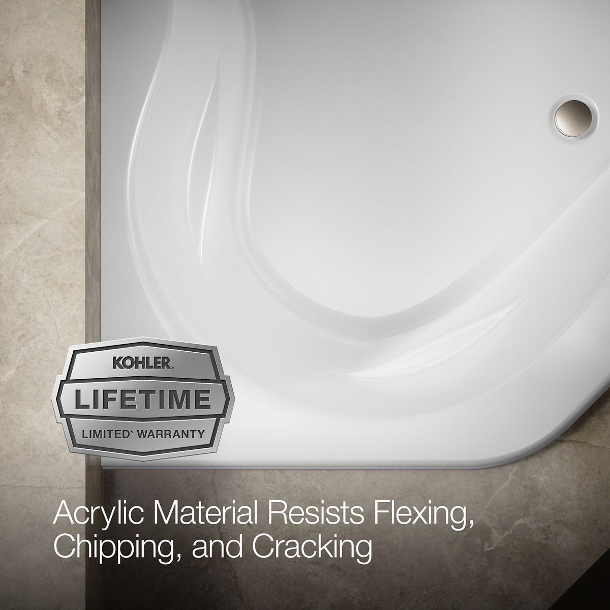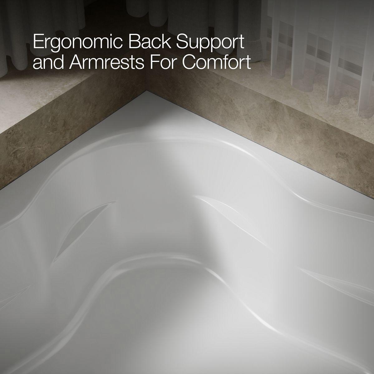 Create your private escape in this spacious clover-shaped bath. With plenty of room for two, Tercet features molded back supports and armrests for an ideal reclining position. The corner design saves space in your bathroom.