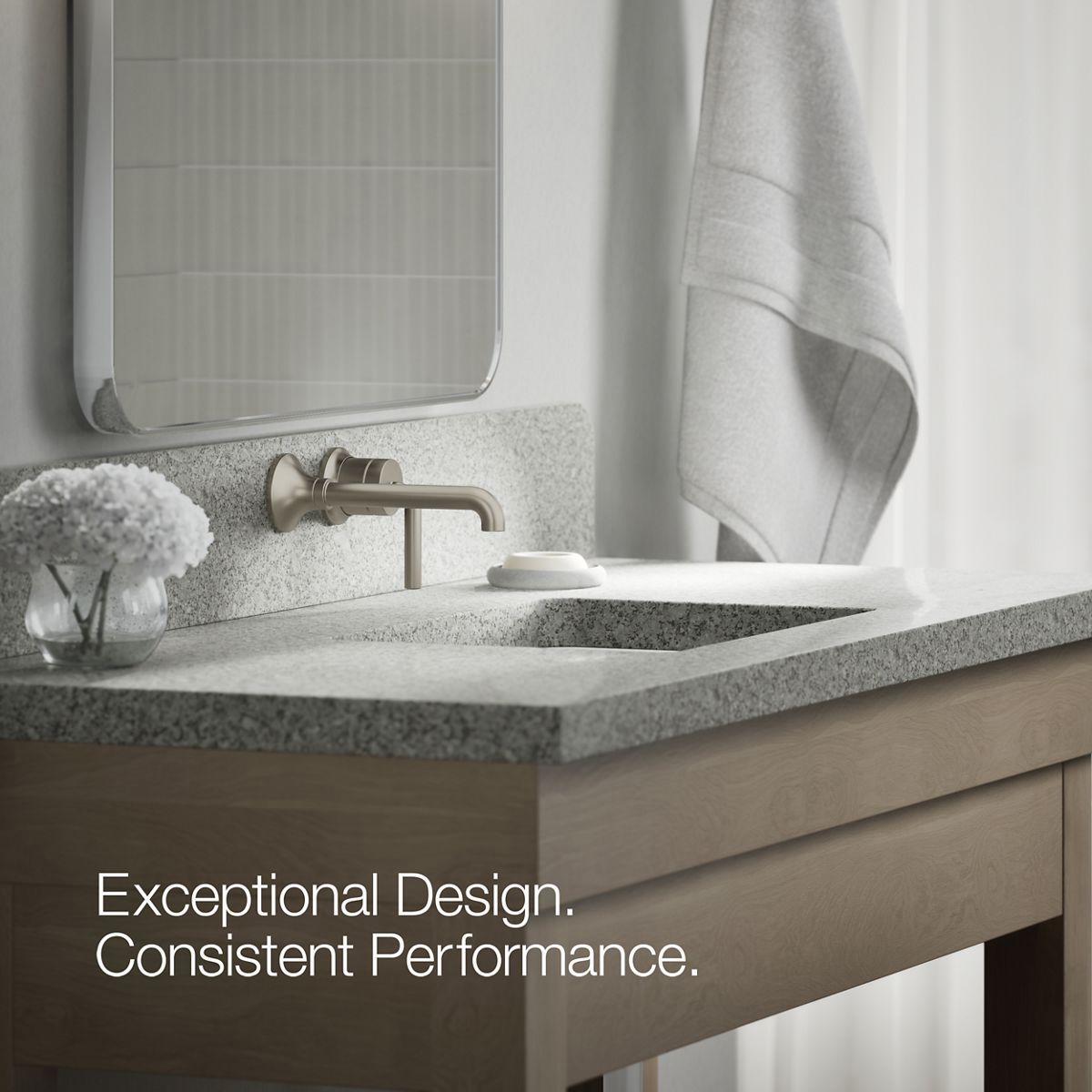 With clean lines and a soft teardrop base, the Tone bathroom faucet collection features a fresh take on midcentury modern style. This inviting design, where minimalism meets warmth, makes for a perfect fit in any space. Paired with thoughtful functionality, the Tone collection is a dynamic beauty.