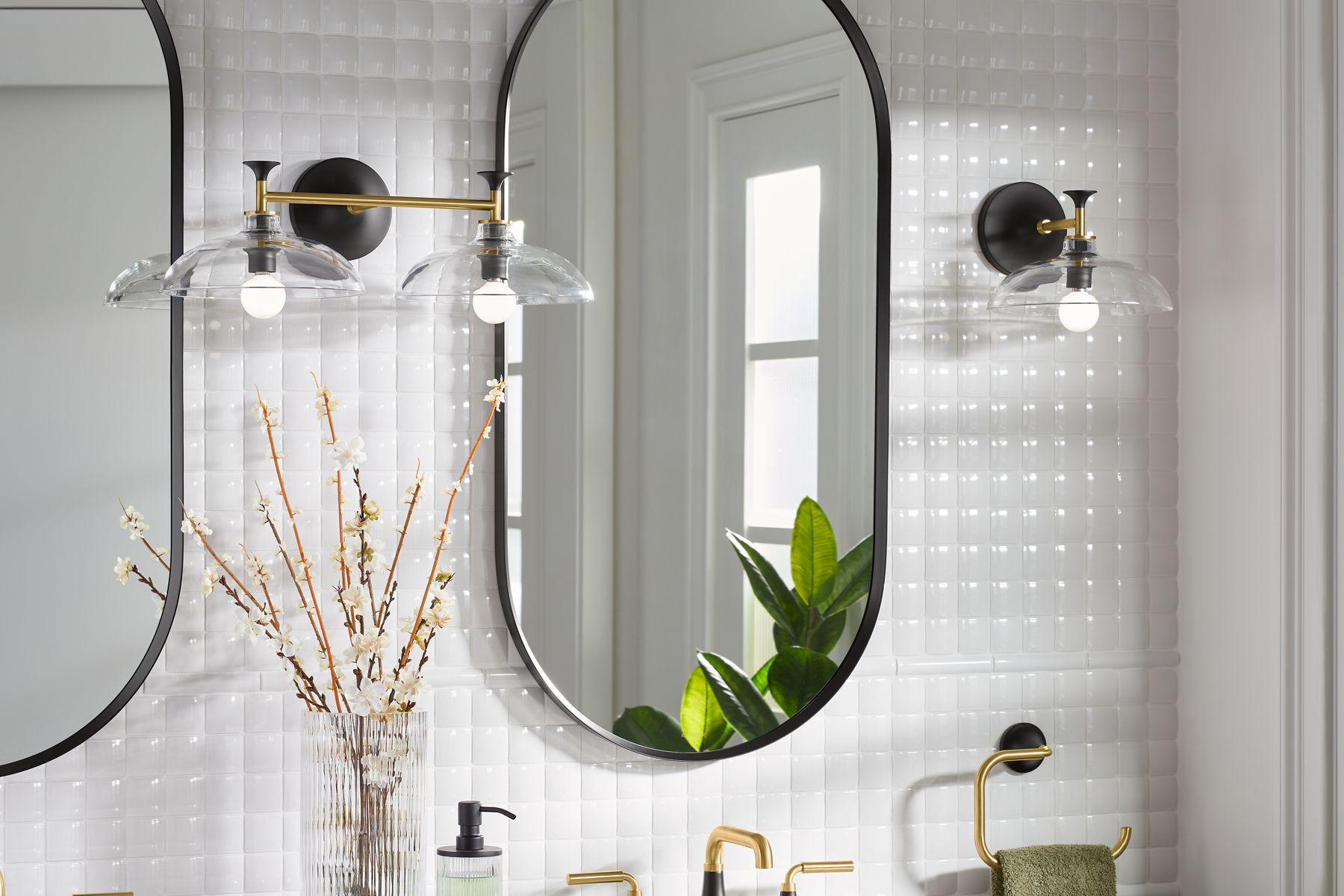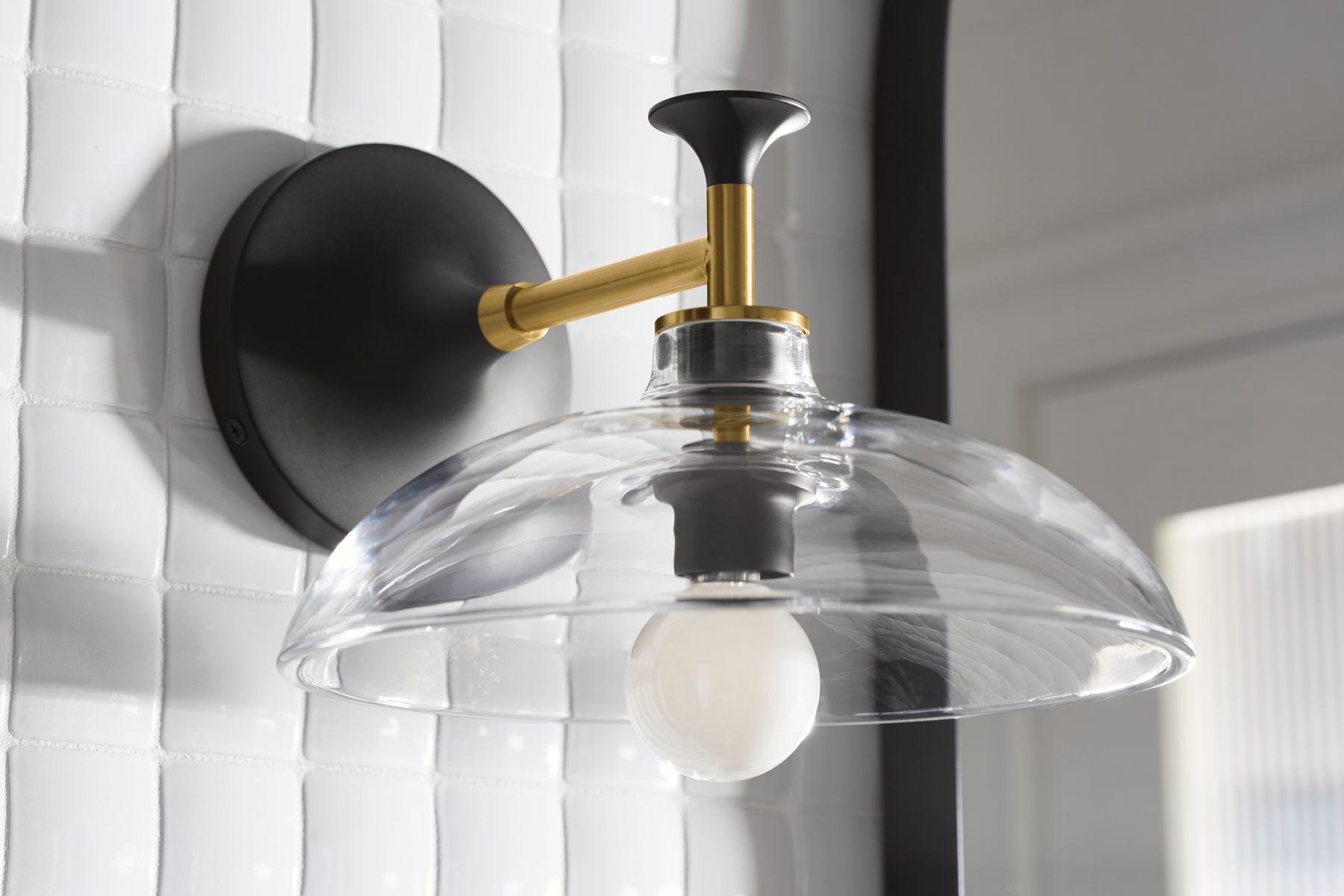 With domed, clear-glass shades, mixed-metal trumpet bases, and intersecting rod supports, the Tone lighting collection delivers a fresh take on midcentury modern style. Blending minimalism, warmth, and thoughtful functionality, Tone lighting fixtures are versatile enough for any space in your home. These contemporary pieces were created to complement the KOHLER® Tone faucet collection for a cohesive home design.
