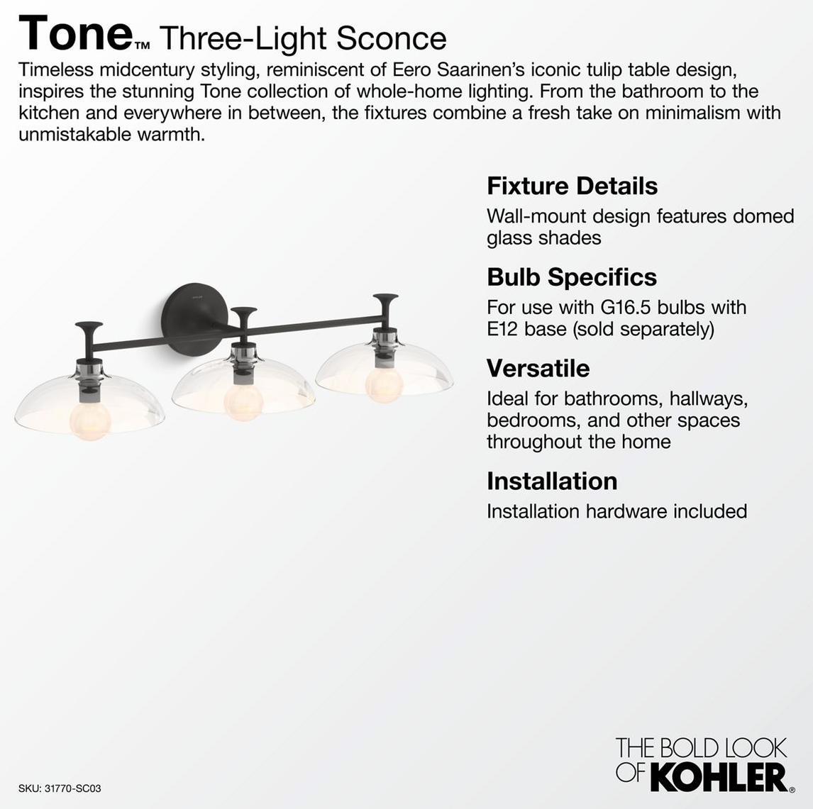 With domed, clear-glass shades, mixed-metal trumpet bases, and intersecting rod supports, the Tone lighting collection delivers a fresh take on midcentury modern style. Blending minimalism, warmth, and thoughtful functionality, Tone lighting fixtures are versatile enough for any space in your home. These contemporary pieces were created to complement the KOHLER® Tone faucet collection for a cohesive home design.