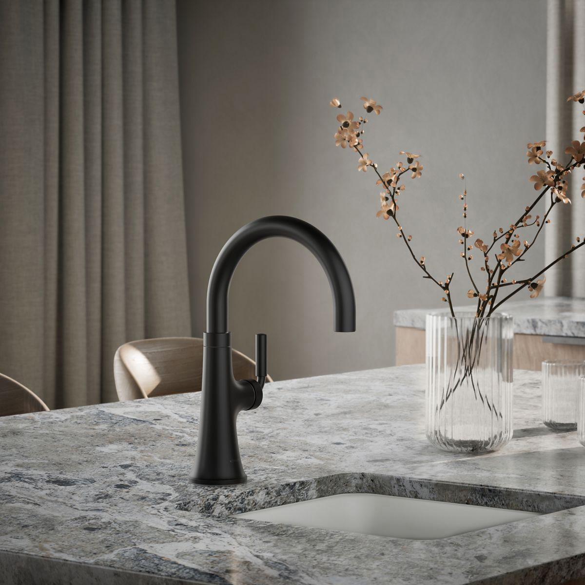 With clean lines and a soft teardrop base, the Tone kitchen faucet collection features a fresh take on mid-century modern style. This inviting design, where minimalism meets warmth, makes for a perfect fit in any space. Paired with thoughtful functionality, the Tone collection is a dynamic beauty.