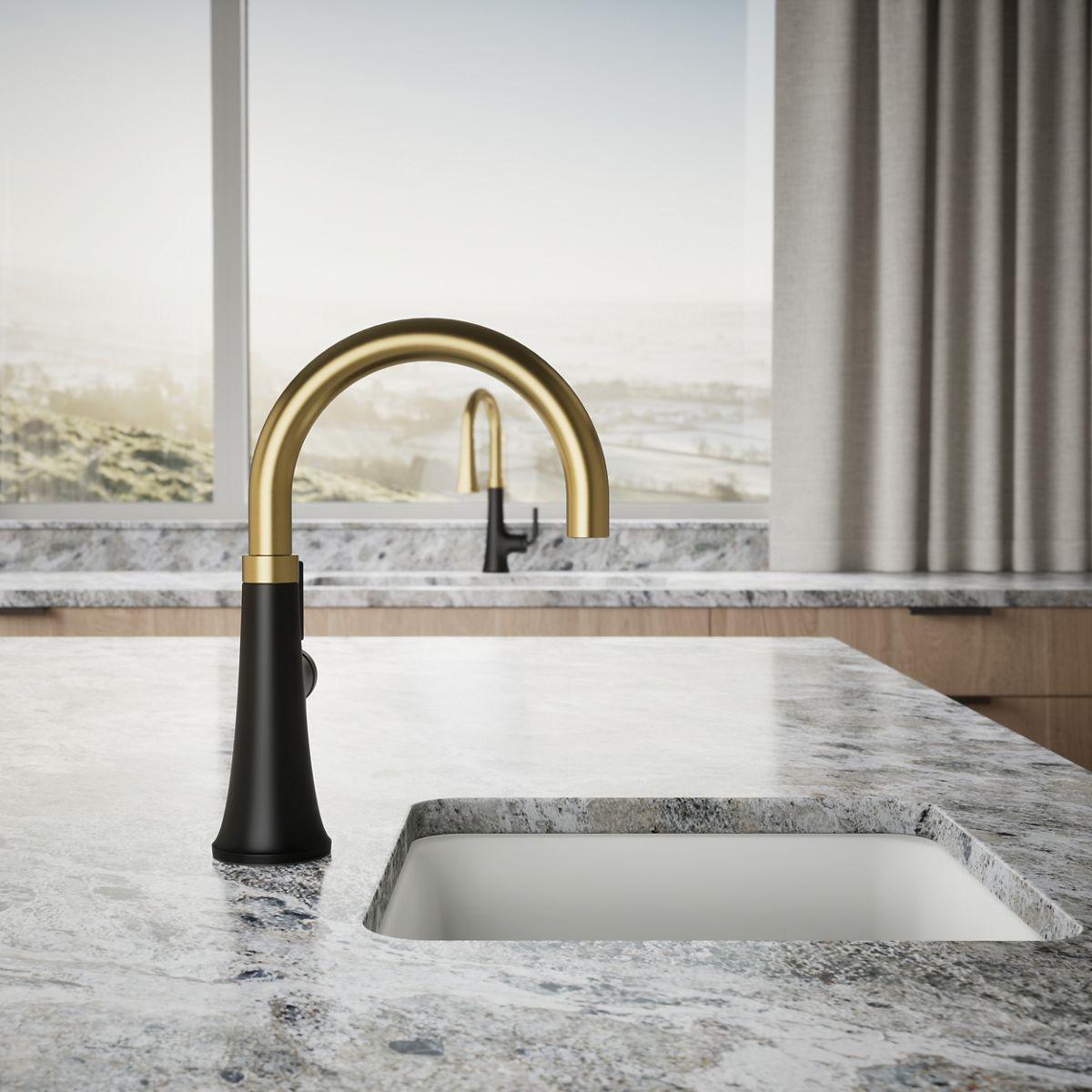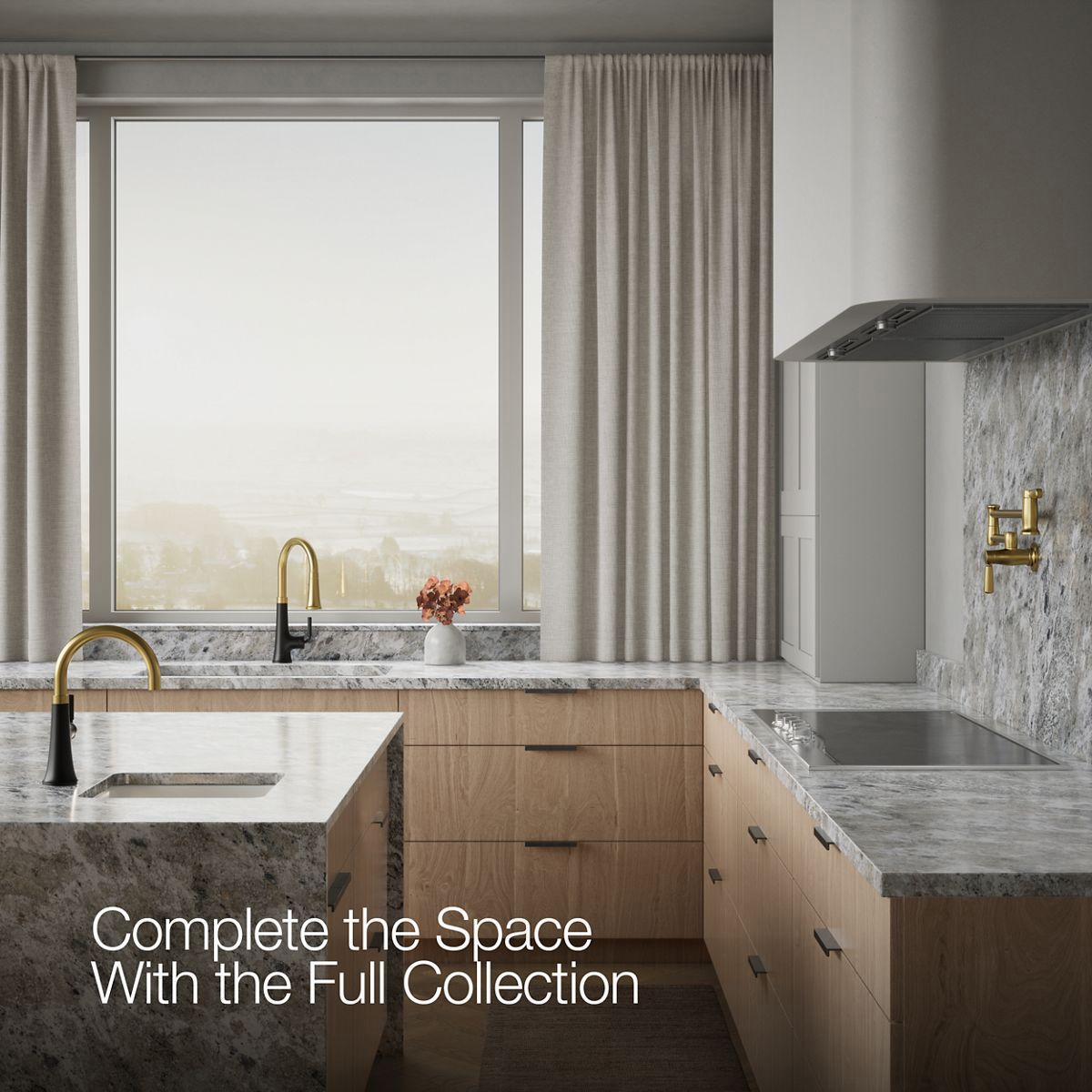 With clean lines and a soft teardrop base, the Tone kitchen faucet collection features a fresh take on mid-century modern style. This inviting design, where minimalism meets warmth, makes for a perfect fit in any space. Paired with thoughtful functionality, the Tone collection is a dynamic beauty.