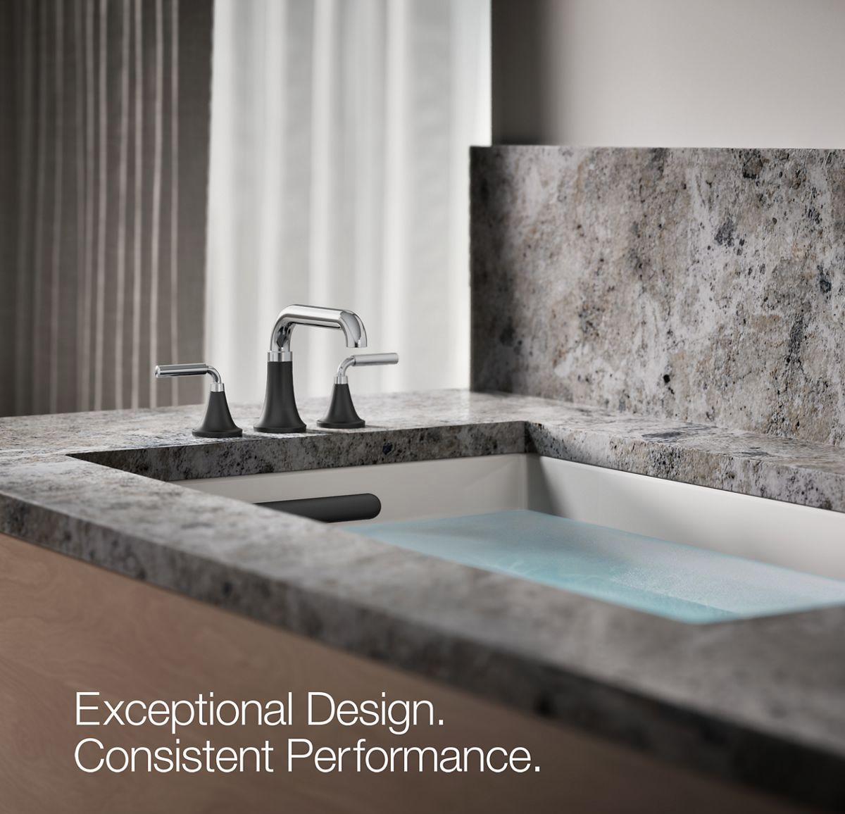 With clean lines and a soft teardrop base, the Tone bathroom faucet collection features a fresh take on midcentury modern style. This inviting design, where minimalism meets warmth, makes for a perfect fit in any space. Paired with thoughtful functionality, the Tone collection is a dynamic beauty.