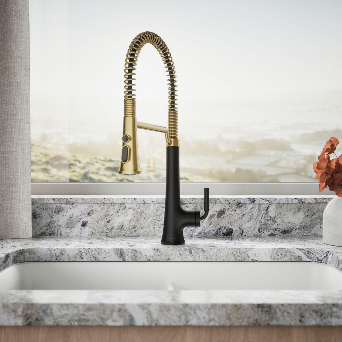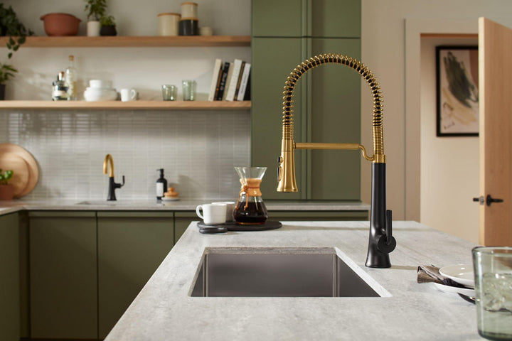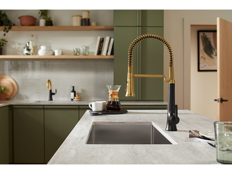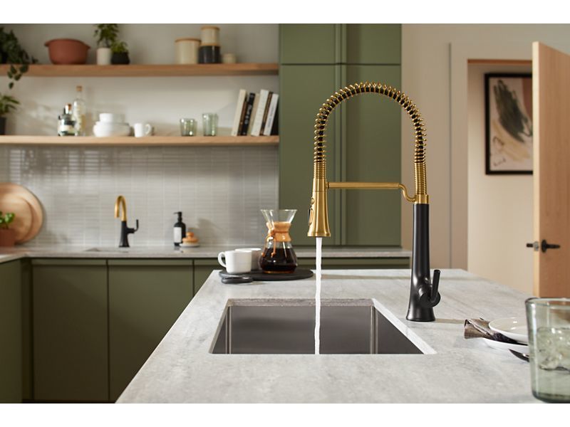 With clean lines and a soft teardrop base, the Tone kitchen faucet collection features a fresh take on mid-century modern style. This inviting design, where minimalism meets warmth, makes for a perfect fit in any space. Paired with thoughtful functionality, the Tone collection is a dynamic beauty.