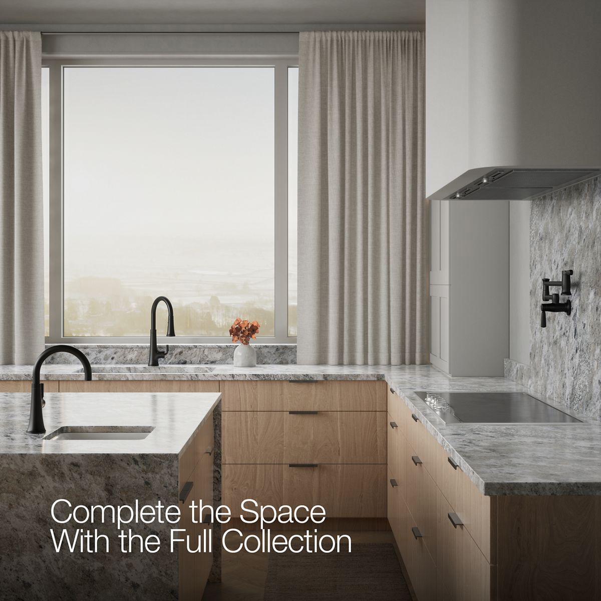 With clean lines and a soft teardrop base, the Tone kitchen faucet collection features a fresh take on mid-century modern style. This inviting design, where minimalism meets warmth, makes for a perfect fit in any space. Paired with thoughtful functionality, the Tone collection is a dynamic beauty.