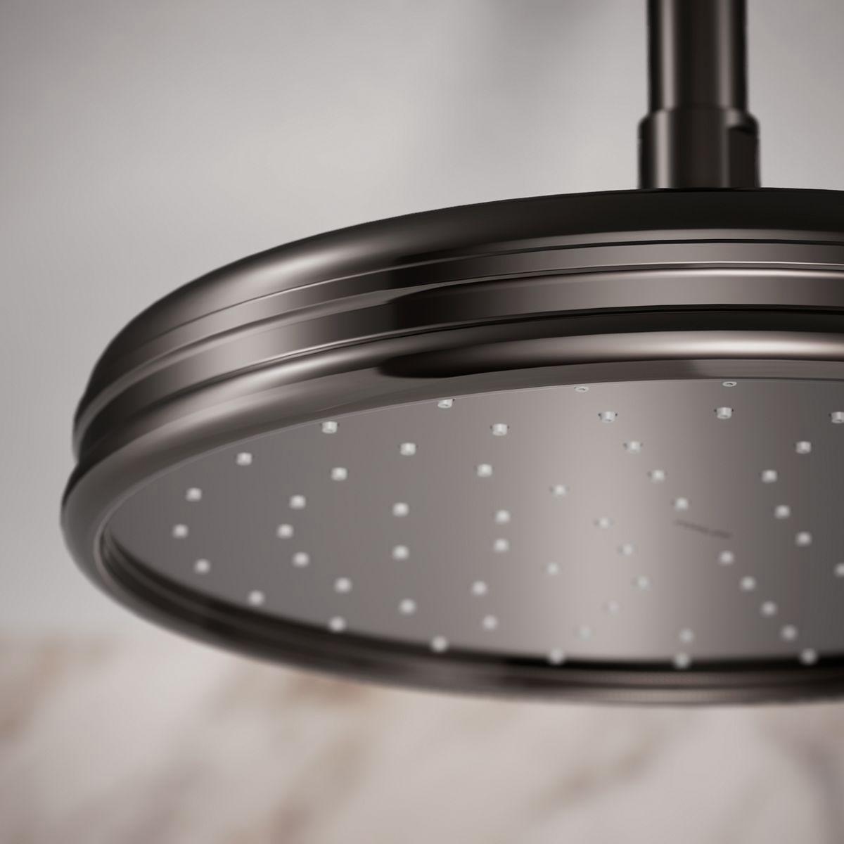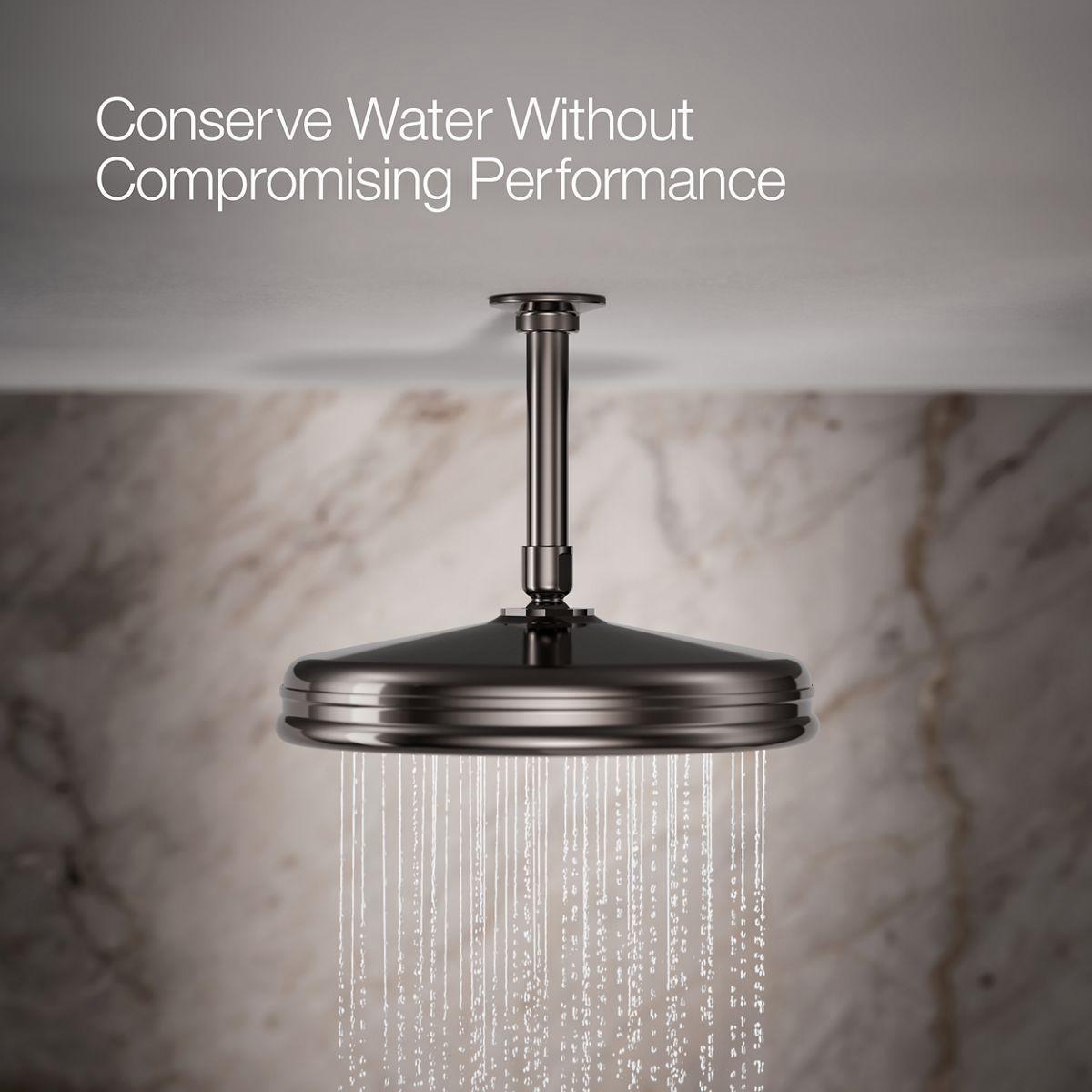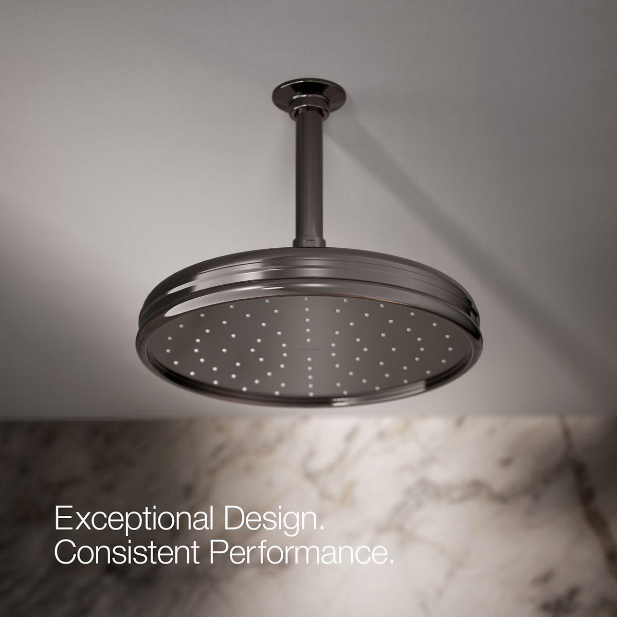 Enjoy a shower that simulates the soaking deluge of a warm summer downpour. This traditional-style rainhead features innovative Katalyst air-induction technology, which efficiently mixes air and water to produce large water droplets and deliver a powerful, thoroughly drenching overhead shower experience. Its clean good looks and durable finish coordinate with many other KOHLER faucets and accessories.