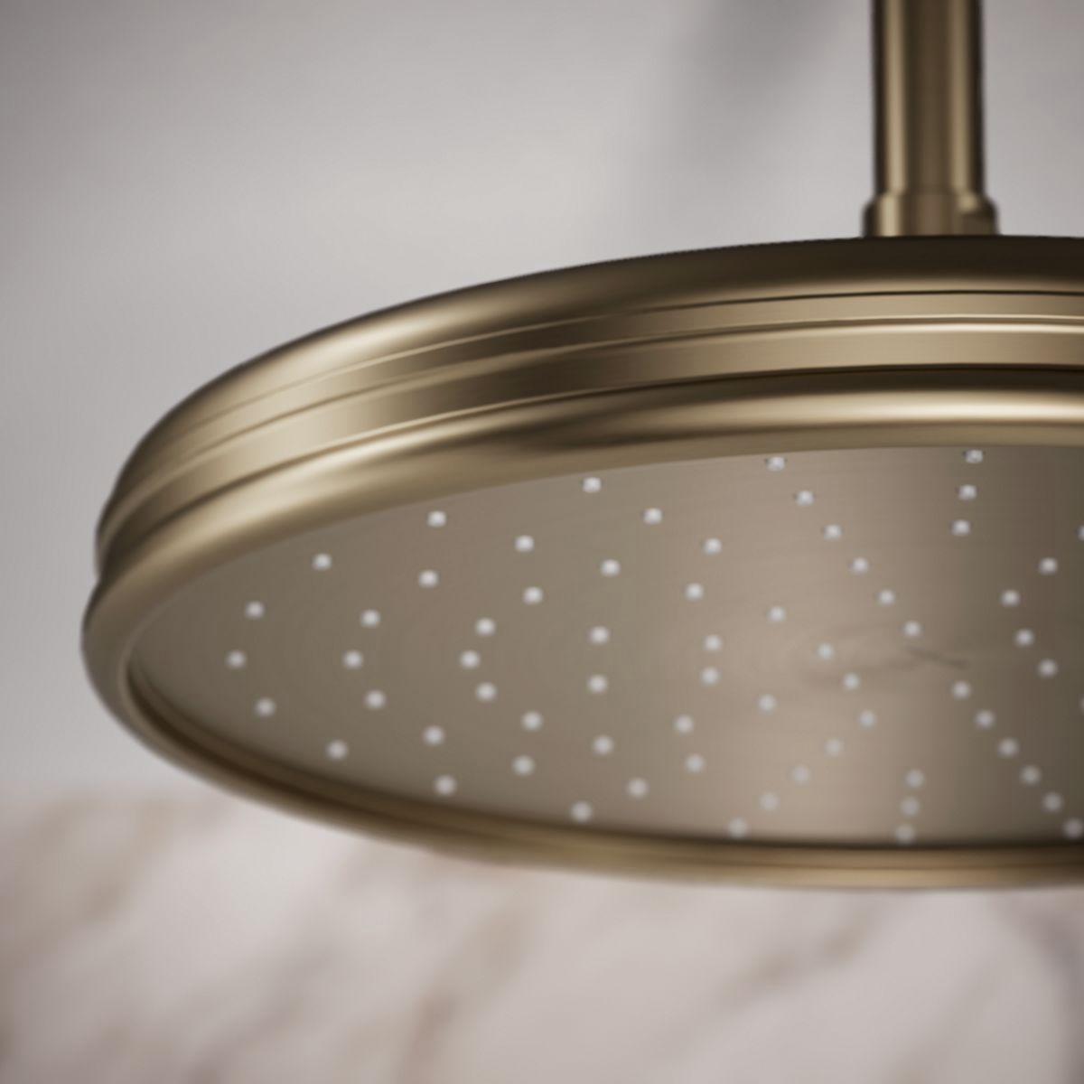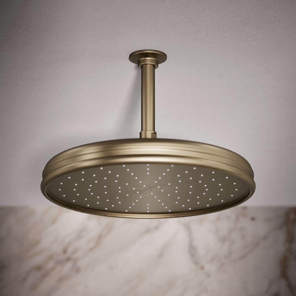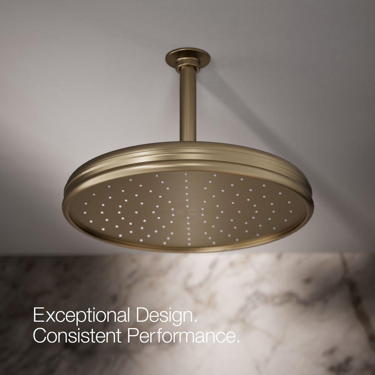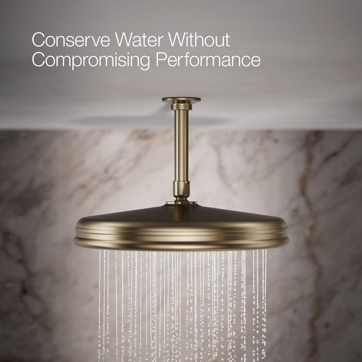 Enjoy a shower that simulates the soaking deluge of a warm summer downpour. This traditional-style rainhead features innovative Katalyst air-induction technology, which efficiently mixes air and water to produce large water droplets and deliver a powerful, thoroughly drenching overhead shower experience. Its clean good looks and durable finish coordinate with many other KOHLER faucets and accessories.