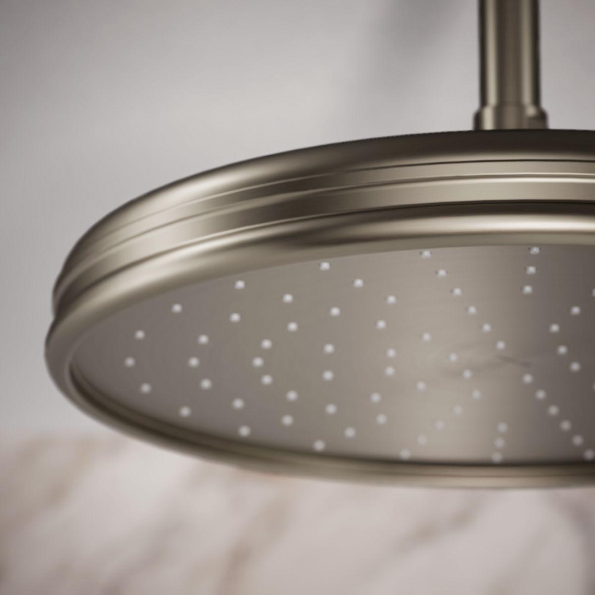 Enjoy a shower that simulates the soaking deluge of a warm summer downpour. This traditional-style rainhead features innovative Katalyst air-induction technology, which efficiently mixes air and water to produce large water droplets and deliver a powerful, thoroughly drenching overhead shower experience. Its clean good looks and durable finish coordinate with many other KOHLER faucets and accessories.