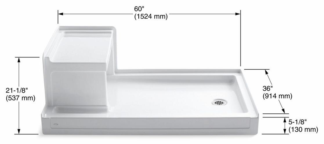 With crisp lines and an elegant border, this Tresham shower base brings classic American design to the bathroom. Designed for comfort, this base includes a built-in seat and low threshold for easy access. Available in a palette of KOHLER colors to complement any décor.